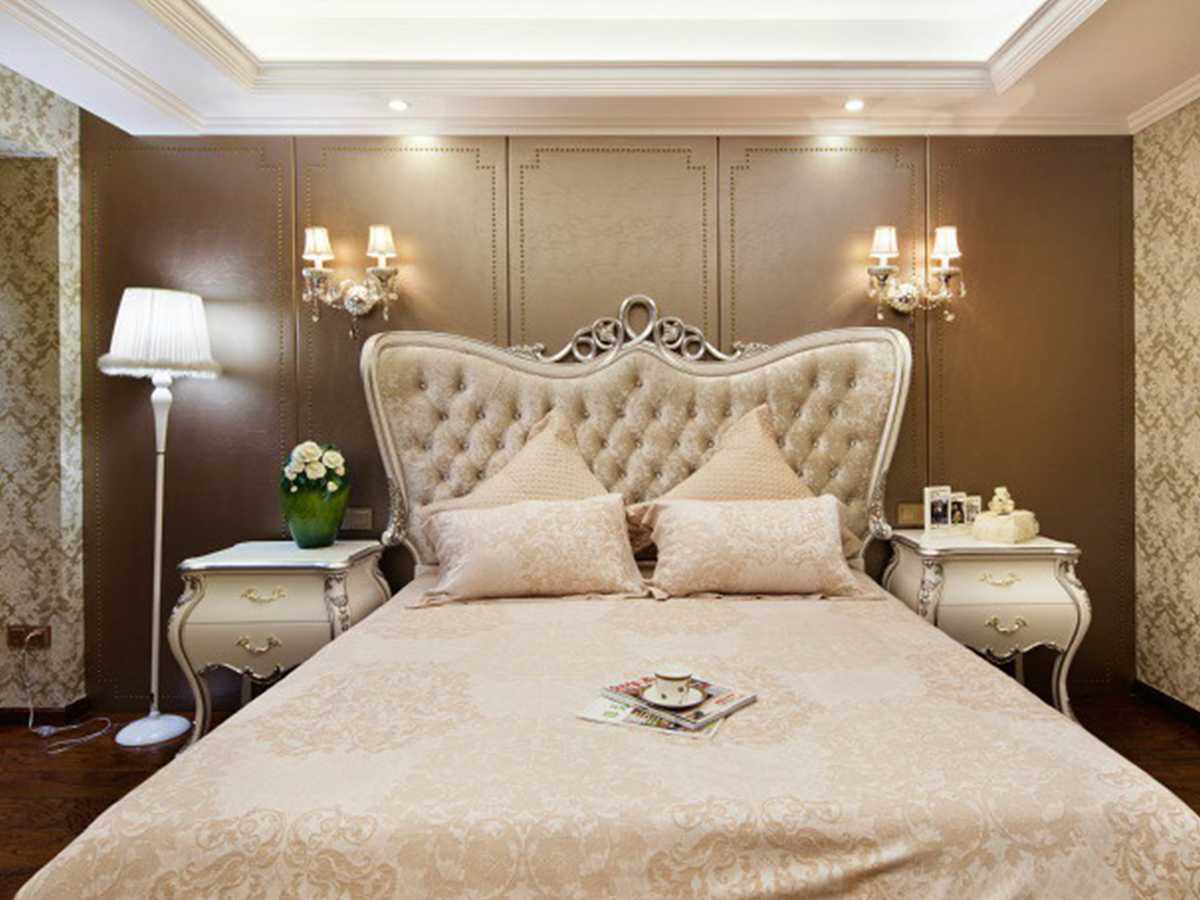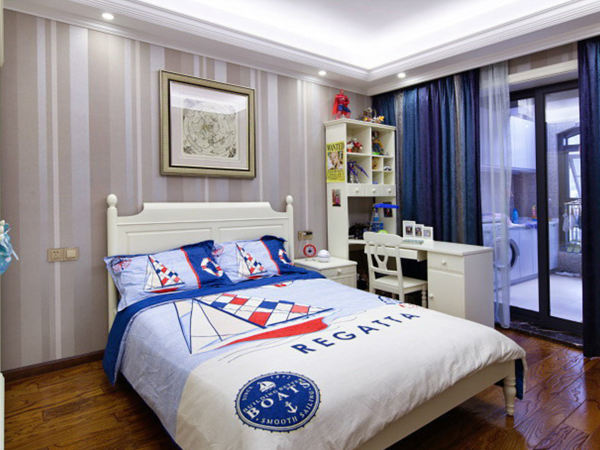 因?yàn)檎w的設(shè)計(jì)歸與簡(jiǎn)潔明快,所以在客廳的這個(gè)空間區(qū)域中我運(yùn)用了對(duì)比的手法,讓沙發(fā)和電視柜的顏色形成對(duì)比,視覺空間拉開,頂面石膏線的運(yùn)用,使空間變得更富有層次。在主臥室的設(shè)計(jì)中我采用了暖色的木地板搭配皮質(zhì)硬包的床頭背景墻,使房間具有溫馨的整體感覺