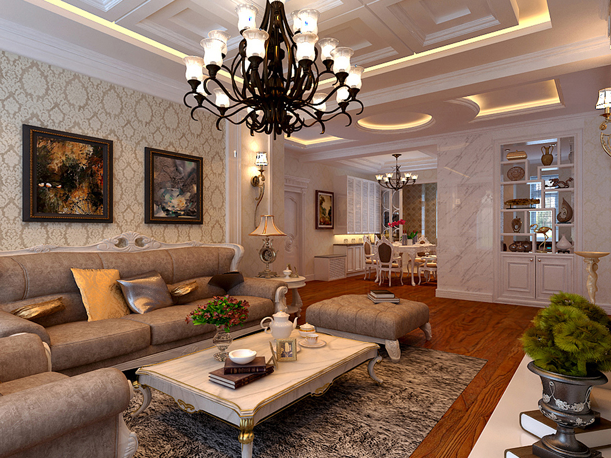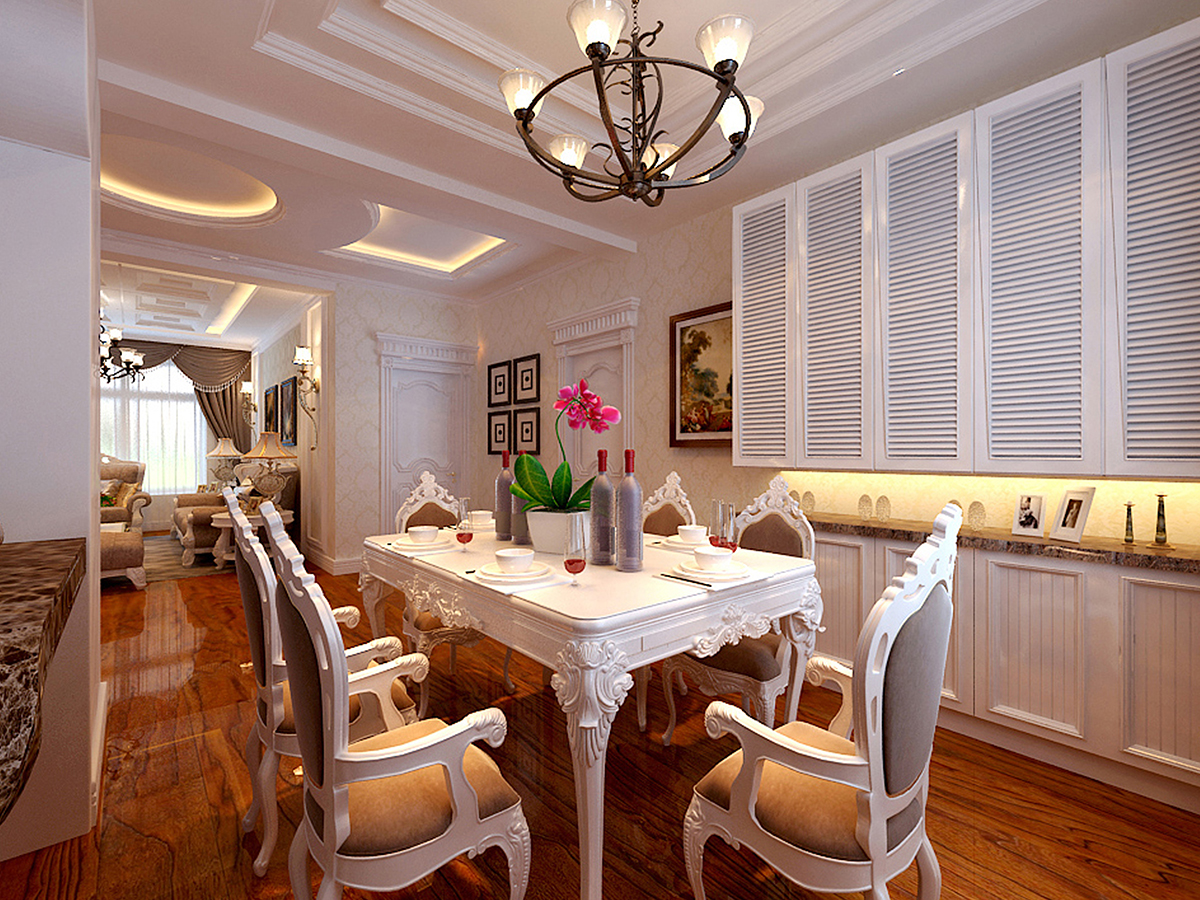 以歐式風格為主添加了一些現代元素搭配,線角變化豐富,家具及燈飾都略顯歐式特色并有一定的文化氛圍,干凈、溫馨,表達的不只是豪華大氣,更多的是愜意和浪漫感覺。通過完美細膩的線條,精益求精的細節處理,帶給家人不盡的舒服觸感。