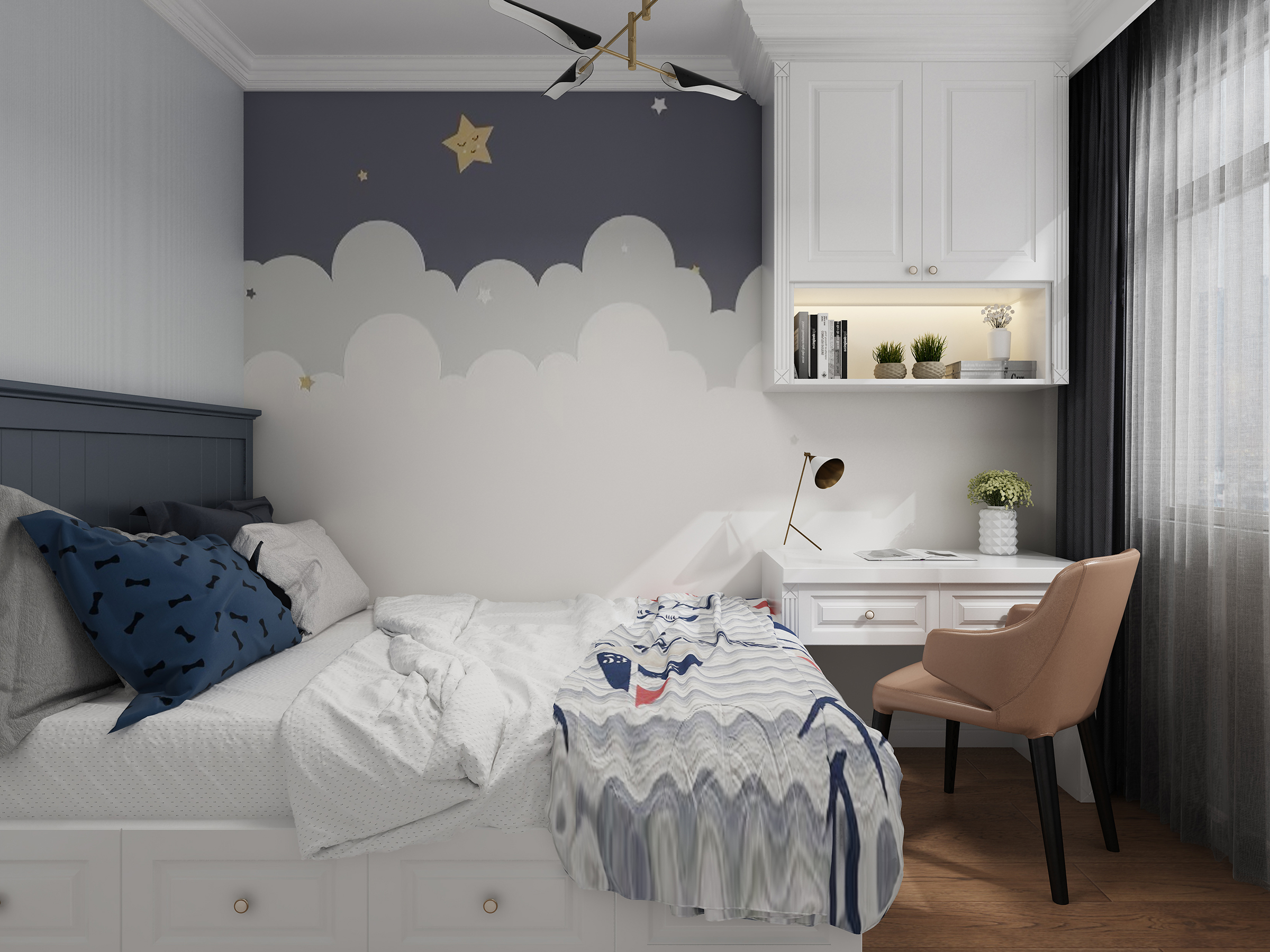 此戶型三居室,長期一個人居住,外孫會來住。所以三居室其中一間改造成了衣帽間。由于有一些舊家具要直接搬過來,所以整個設計墻體改動較多。