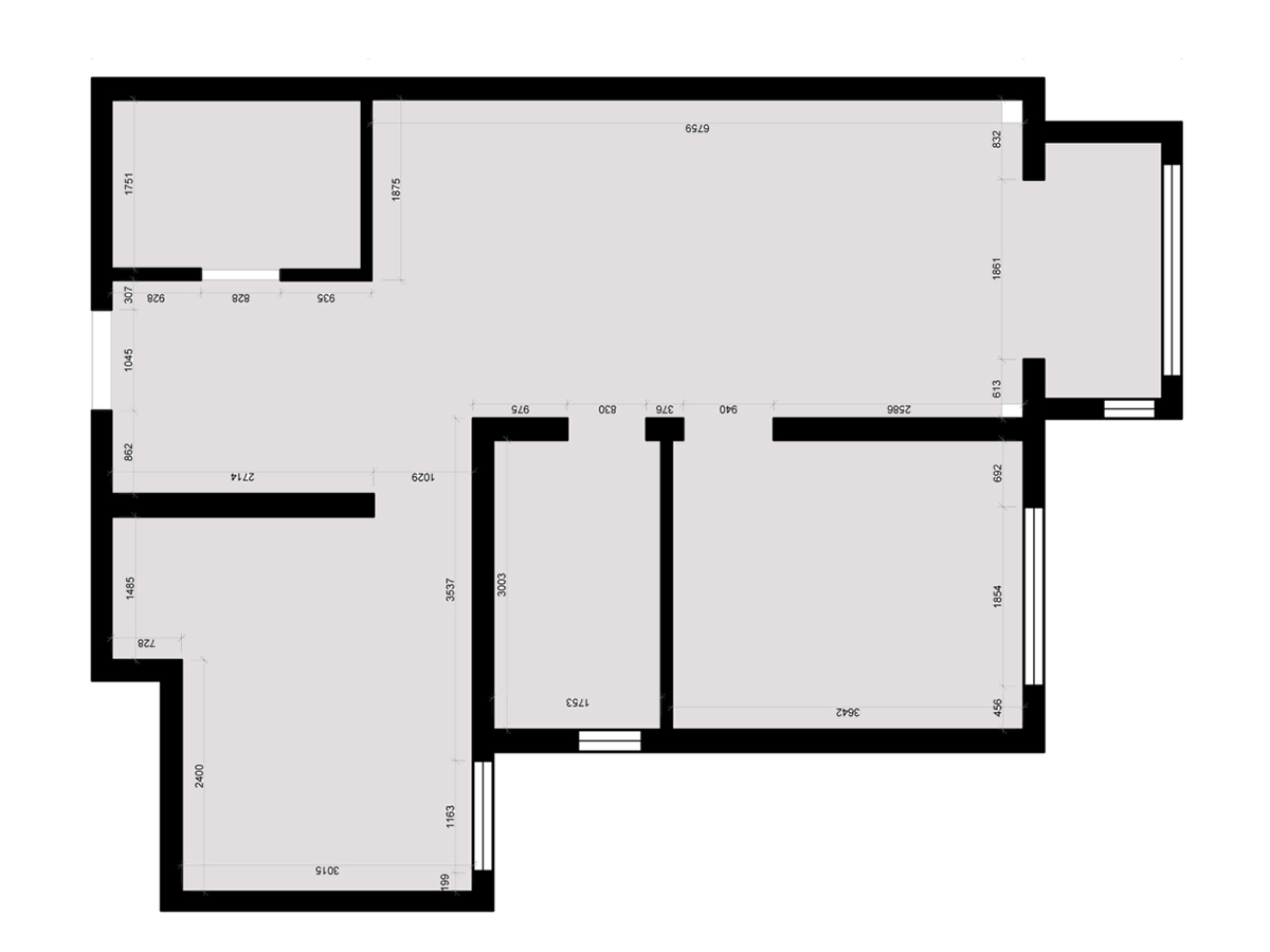 該案原始戶型是一個兩居室 ,對于空間的需求首先滿足的是客戶三代人五號之家的居住需求。孩子男孩現在上小區,父母偶爾會來住,但臥室必須要獨立。在居住習慣上女主人喜歡干凈簡潔的灰色系,通過溝通最終確定做現代輕奢。為了滿足需求在原有兩居室的基礎上規劃了三居室。衛生間也同時改為干濕三式分離。為了突出空間特性,在整體色調上保持黑白灰的主調,加入暖色燈來調節空間氛圍。在高冷的空間中有不失柔和的一面。