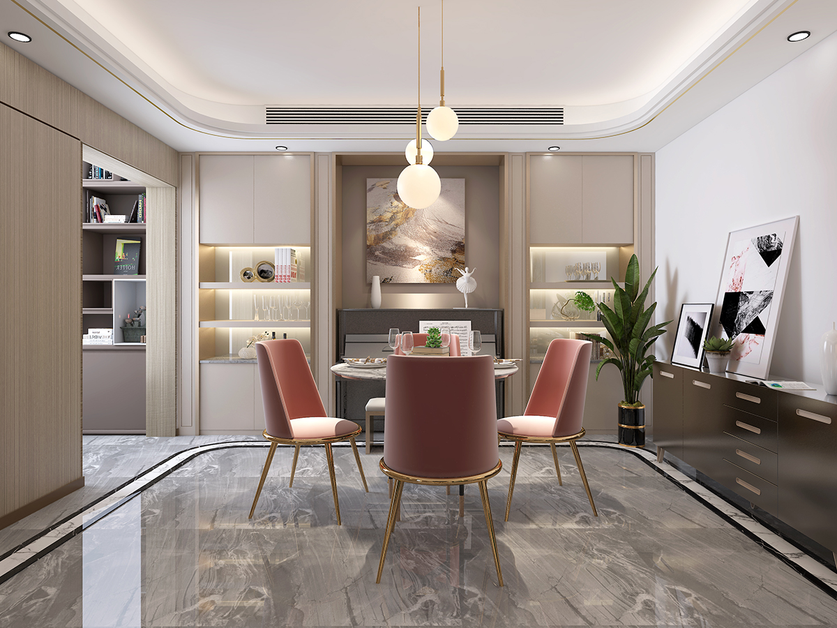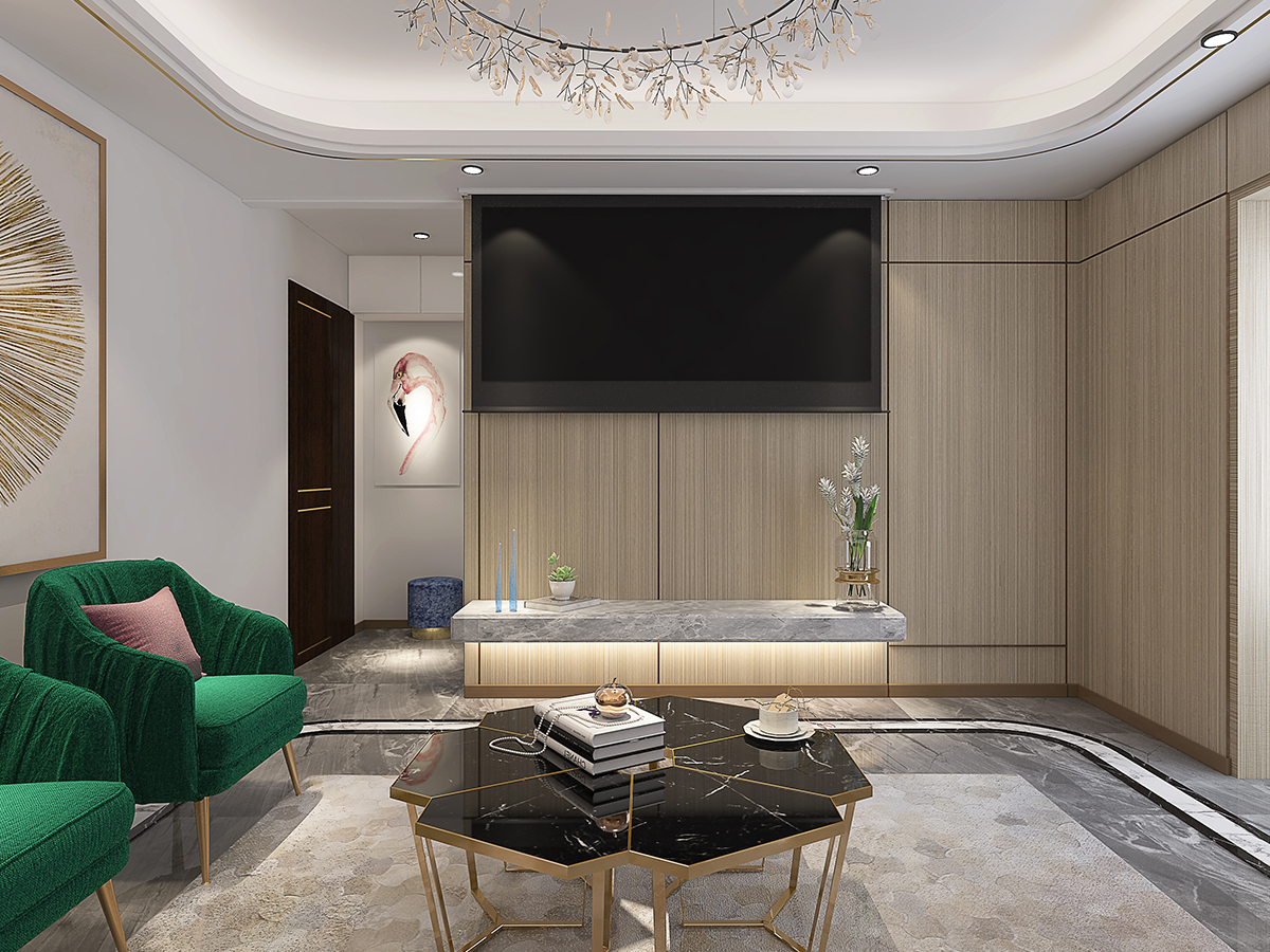 業主是一個五口家庭,兩位老人和一個上小學的兒子,設計師對設計方案進行深刻研究,總定稿為現代偏輕奢的感覺。在設計思路上要求既要保證設計的美觀和實用性又要兼顧老人和孩子。