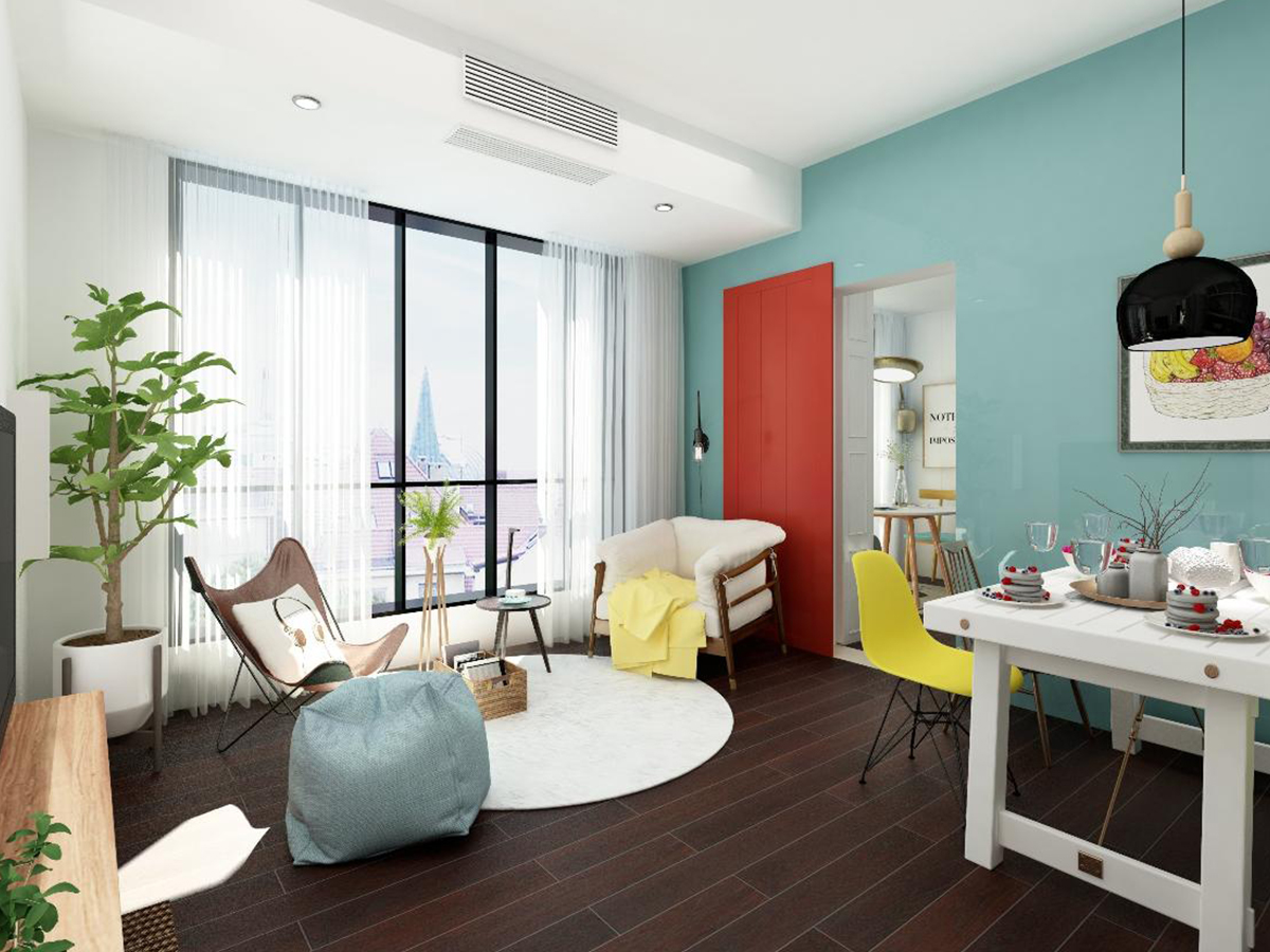 色彩對比鮮明,客廳充滿活力,年輕人理想的家