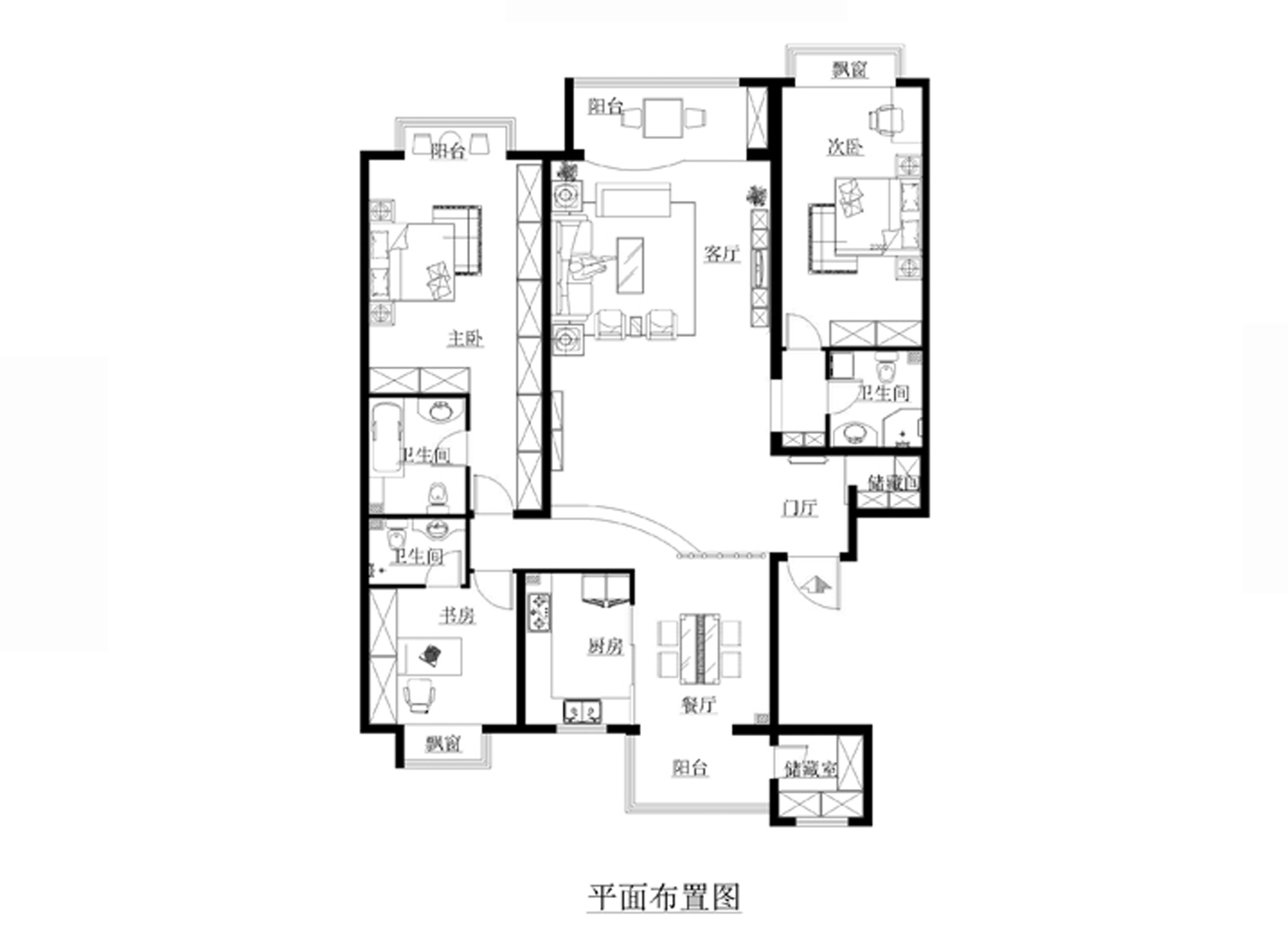 潮白河孔雀城110㎡兩居室現代簡約風格
