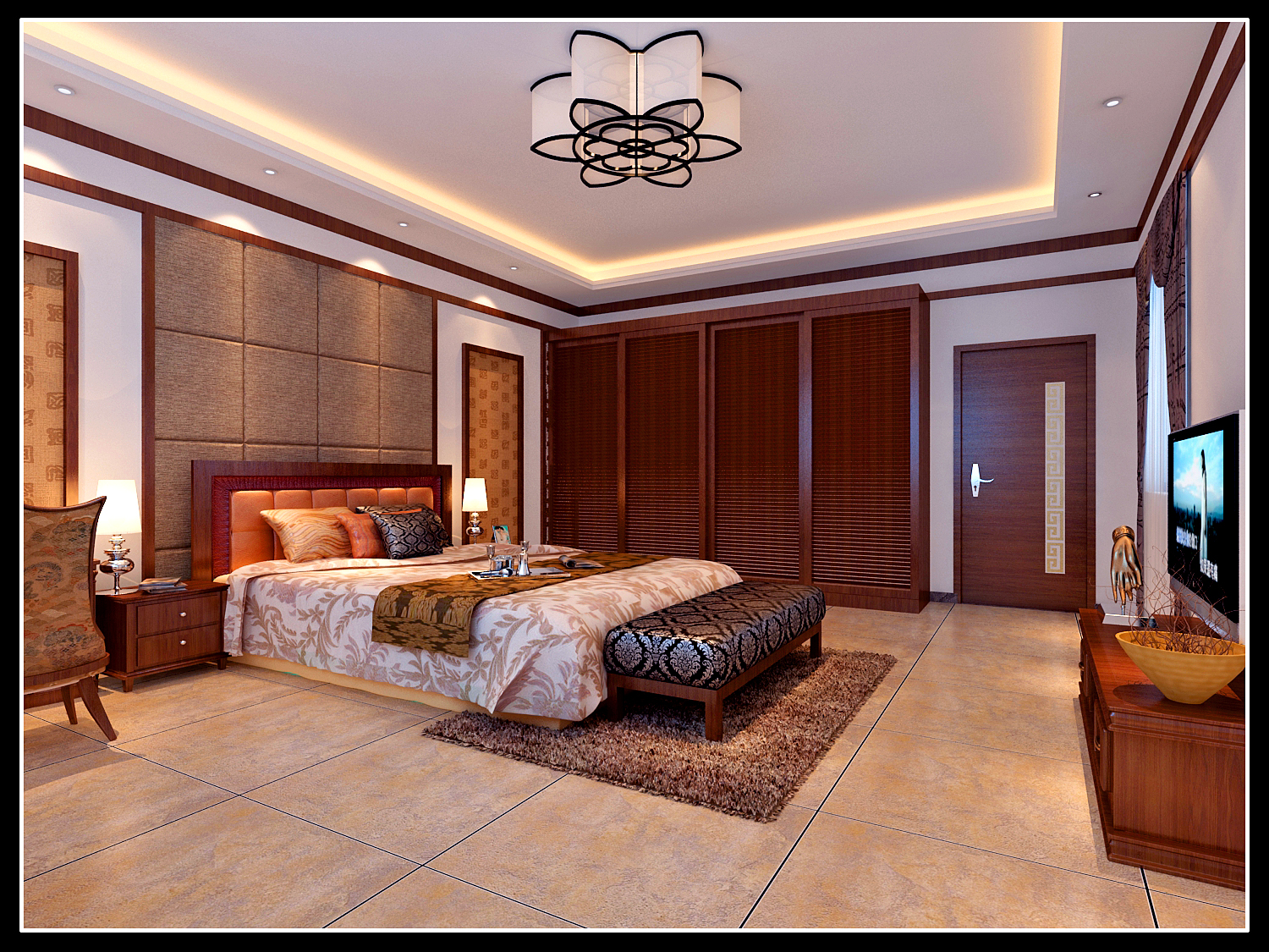 色彩應(yīng)以統(tǒng)一、和諧、淡雅為宜,對局部的原色搭配應(yīng)慎重,穩(wěn)重的色調(diào)較受歡迎,本例主要運(yùn)用到木材質(zhì),張顯簡樸大方之氣。歐式臥室有的不只是豪華大氣.