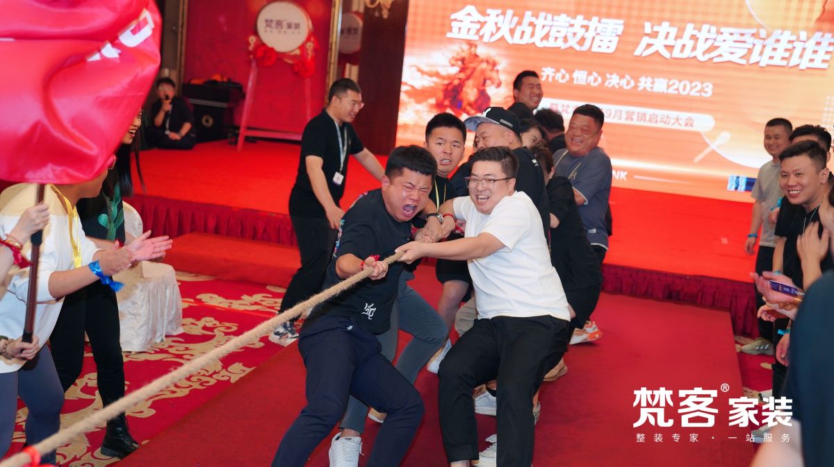 終于迎來了9月裝修旺季,在大家的期盼下,梵客家裝營銷大會(huì)熱烈開啟。此次會(huì)議融入了鼓舞士氣的內(nèi)容,將團(tuán)隊(duì)拓展項(xiàng)目搬入會(huì)議廳,兩組游戲從動(dòng)與靜兩個(gè)維度出發(fā),考核了大家不同情境下的實(shí)力。