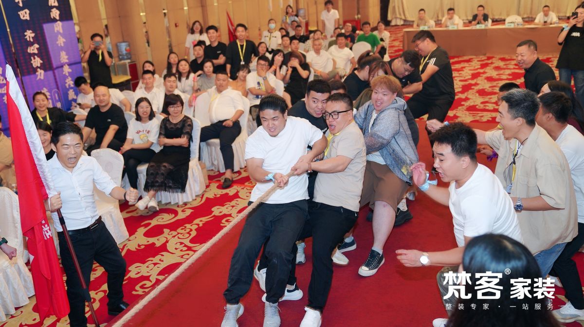 第一個(gè)項(xiàng)目是力拔山河,通俗說就是拔河。看似簡單,要想戰(zhàn)勝對手并不容易,要揣摩對方的實(shí)力、體能;在拔河的過程中也要身體核心發(fā)力,僅靠手腕的力量是遠(yuǎn)遠(yuǎn)不夠的。此外,還要團(tuán)隊(duì)集中用力,不能分散力量。關(guān)鍵是還要有一鼓作氣、一戰(zhàn)到底的決心。在這個(gè)環(huán)節(jié),梵客家裝的精英戰(zhàn)隊(duì)們各個(gè)展示了不服輸?shù)钠床瘛?/span>