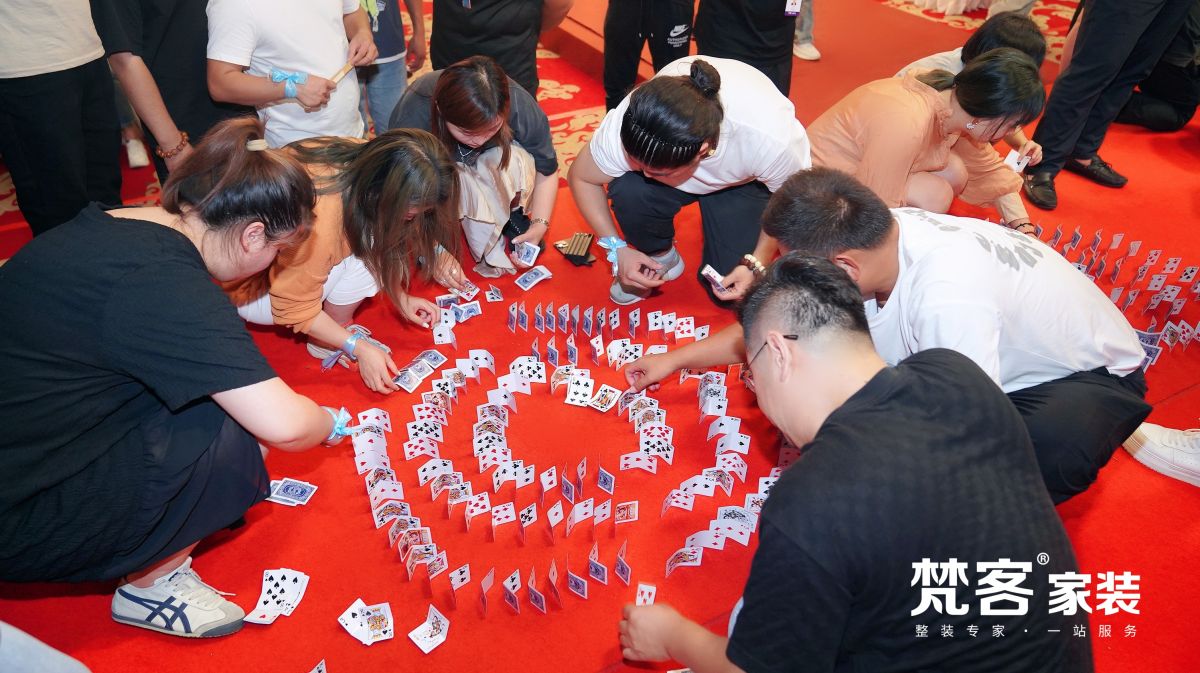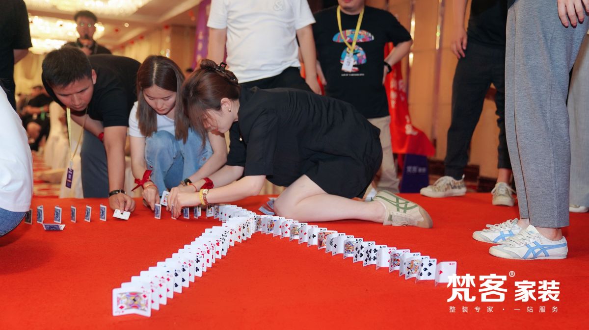 第二個(gè)項(xiàng)目是紙牌多米諾,這里更需要智慧,以及心態(tài)的平穩(wěn)和冷靜的性格。紙牌多米諾存在于一個(gè)相互聯(lián)系的系統(tǒng),驚動(dòng)一張紙牌,會(huì)產(chǎn)生一系列連鎖反應(yīng),由此導(dǎo)致失敗。參賽者還要極度地細(xì)心,對注意力、專注度、耐心都有較高要求。梵客家裝的小伙伴們依然不負(fù)眾望,取得了優(yōu)異的成績。