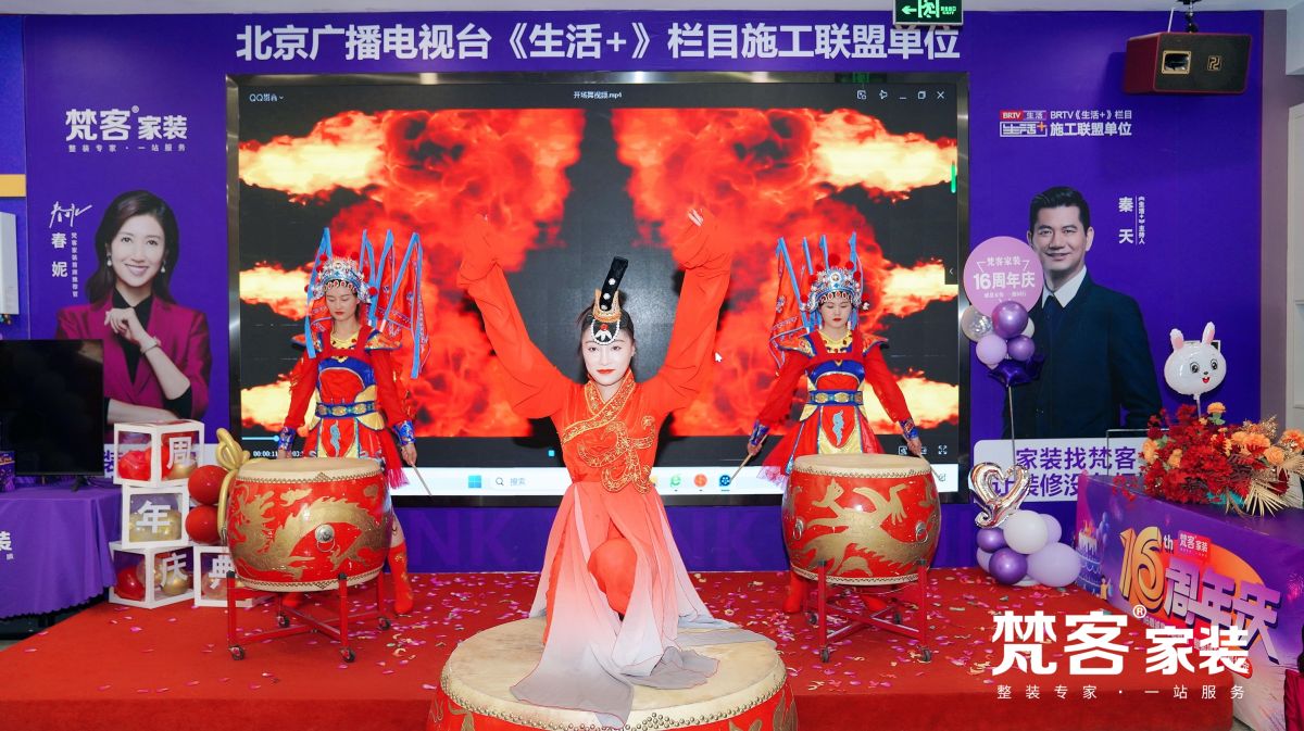 下午三點(diǎn),嘉賓陸續(xù)到場,在鼓舞“中國龍”激昂的音樂聲中,梵客家裝16周年慶典拉開帷幕。背景屏幕呈現(xiàn)出梵客家裝歷年來的成長軌跡,砥礪前行卻又光芒四射。演員敲打的鼓點(diǎn)振奮人心,仿佛每次敲擊都是在訴說梵客16年的風(fēng)雨兼程。