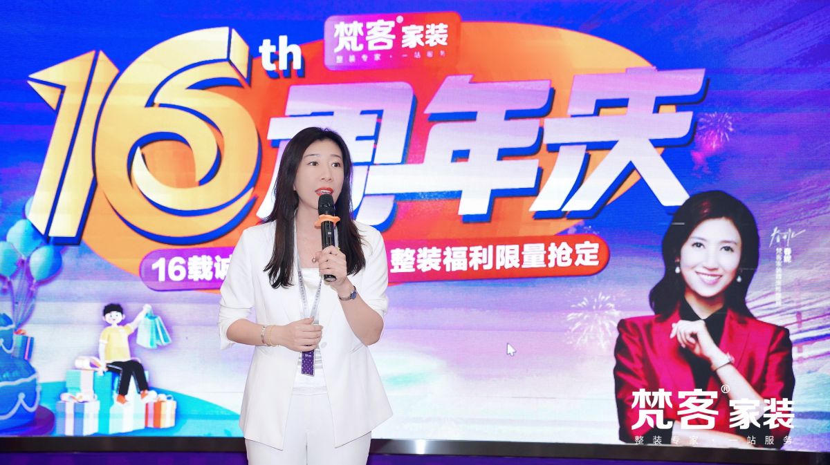 梵客集團(tuán)副總裁、梵客家裝總經(jīng)理任琳女士在16周年慶典上率先致辭: