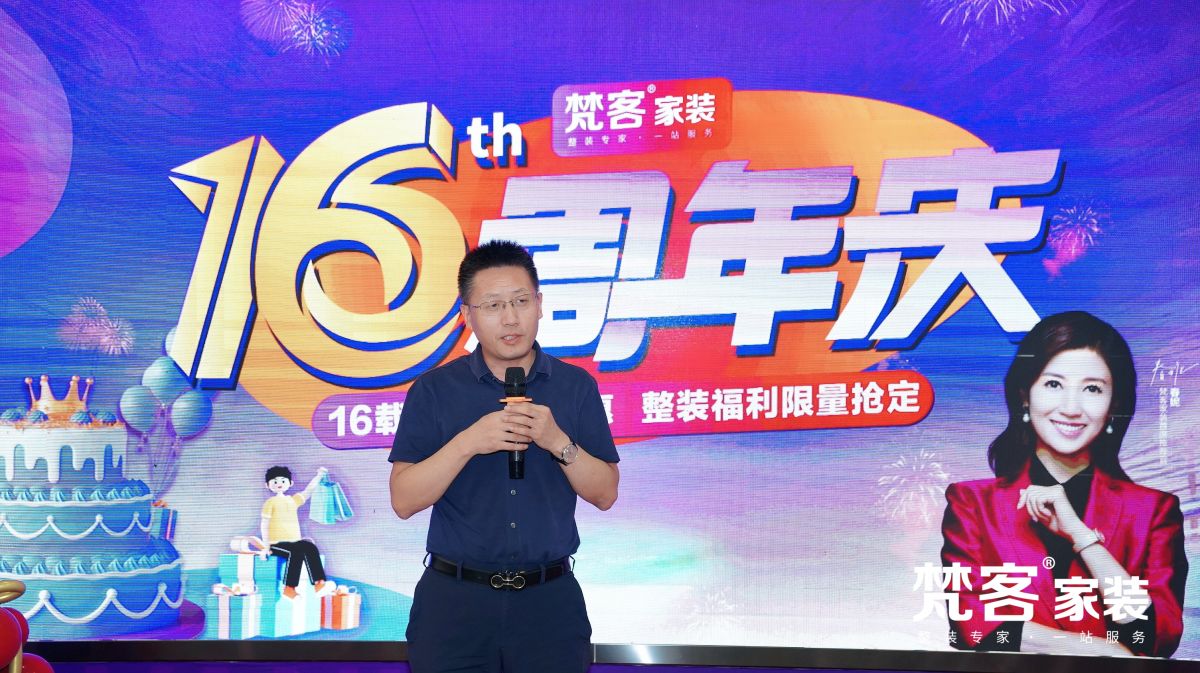 “和梵客家裝相識多年,一直保持著愉快而友好的合作伙伴關(guān)系,親眼見證了梵客家裝這一路突飛猛進(jìn)的成長,今天是個(gè)好日子,祝福梵客家裝16周年生日快樂,也祝愿今天來到現(xiàn)場的業(yè)主朋友裝好家、過美滿幸福的生活。”