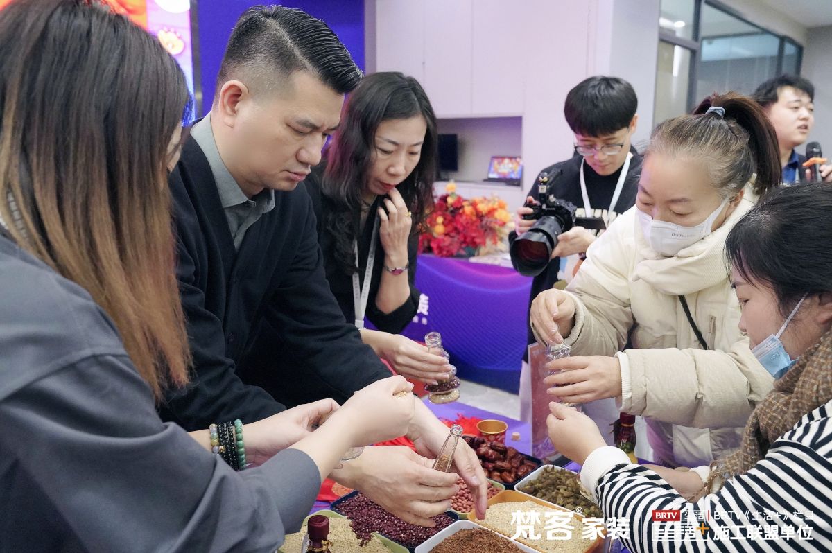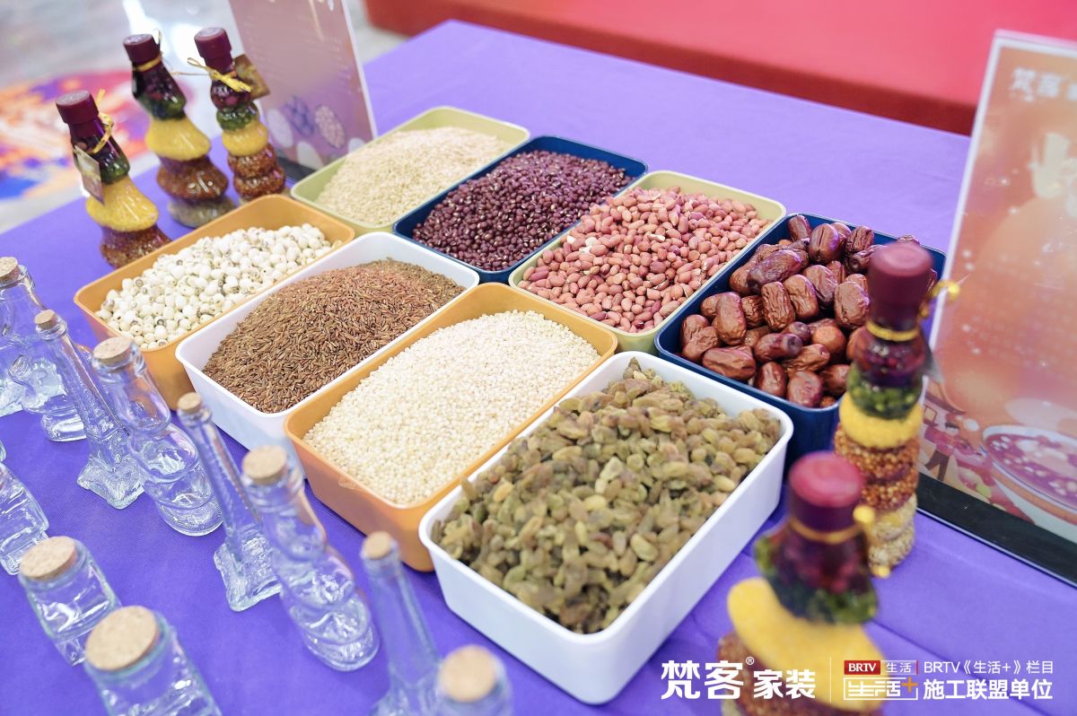 還有幾天就是臘八節,著名主持人秦天老師也來到新年裝新家的活動現場,和大家一起準備臘八粥食材,并為業主朋友送去節日祝福。大家將米、栗、棗、果、仁等裝入不同形狀的玻璃瓶,一份心意一份粥到。