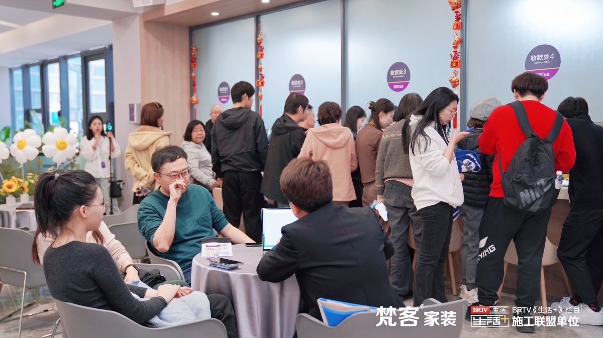 展廳隨處可見業主朋友,付款處也排起了隊,再次體現了一家17年的大型家居裝飾企業的品牌實力以及百姓口碑,不愧是標桿家裝企業,最受消費者信賴的家裝品牌。