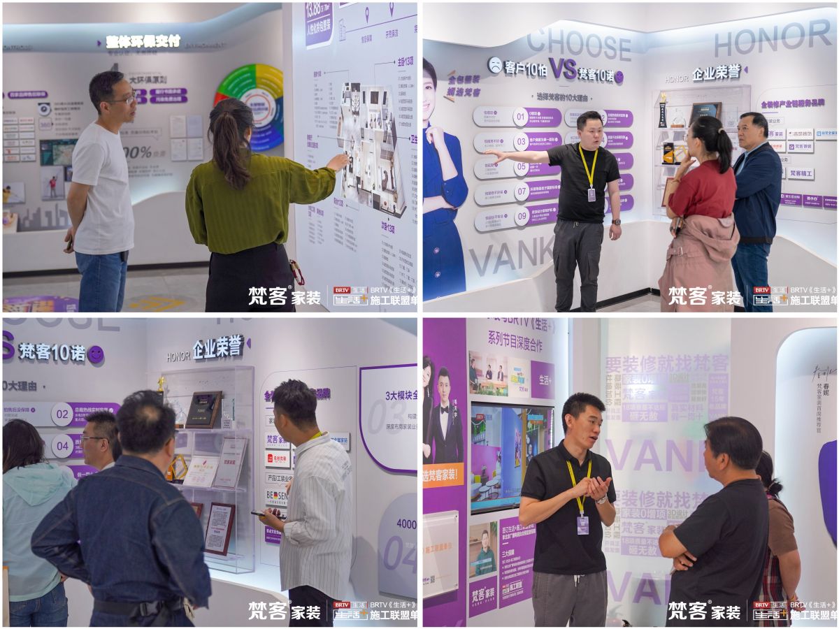 館內布局了企業文化墻,這里呈現著梵客家裝成立17年的大事記、獲得的榮譽獎項,與媒體的深度合作,以及服務宗旨、整裝產品信息等內容。方便第一次到訪的業主朋友對梵客家裝有個初步了解。