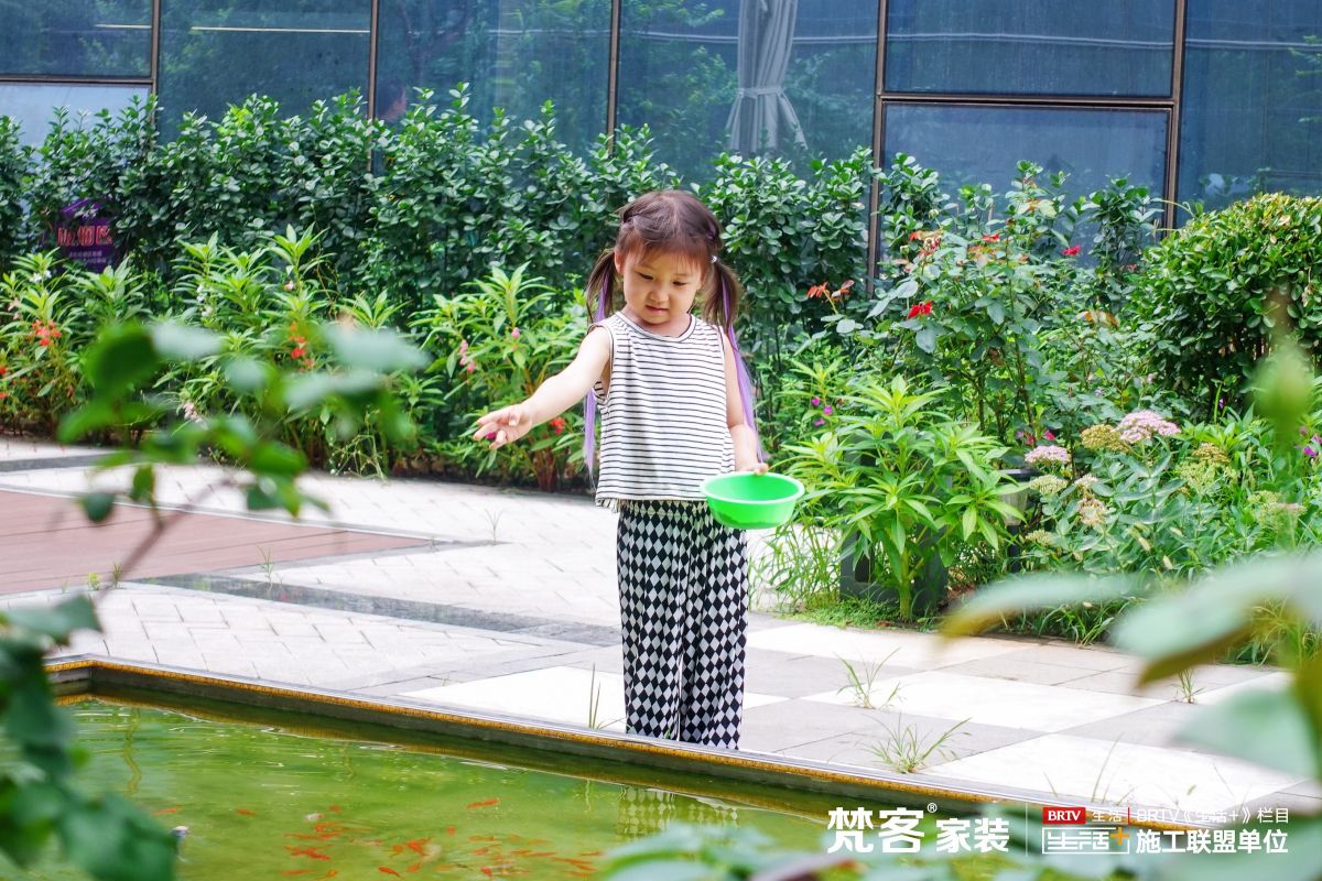 為了給業主朋友帶來更舒適愜意體驗環境,梵客家裝的露天花園也重新改造,綠植、花卉更加豐茂,小朋友還可以在魚塘喂魚。