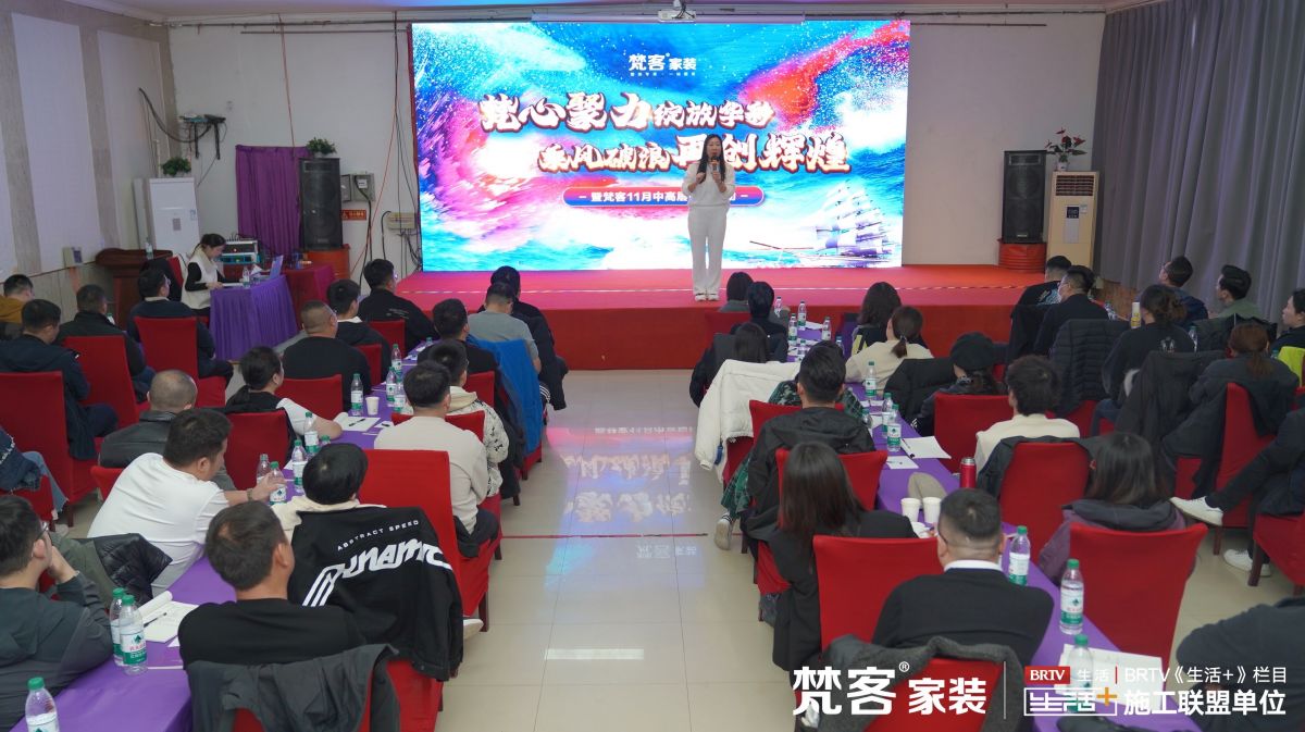 隨后,梵客集團(tuán)副總裁/梵客家裝總經(jīng)理任琳女士也上臺(tái)致辭,總結(jié)近期工作內(nèi)容,并鼓勵(lì)大家再接再厲,爭(zhēng)取突破創(chuàng)新。