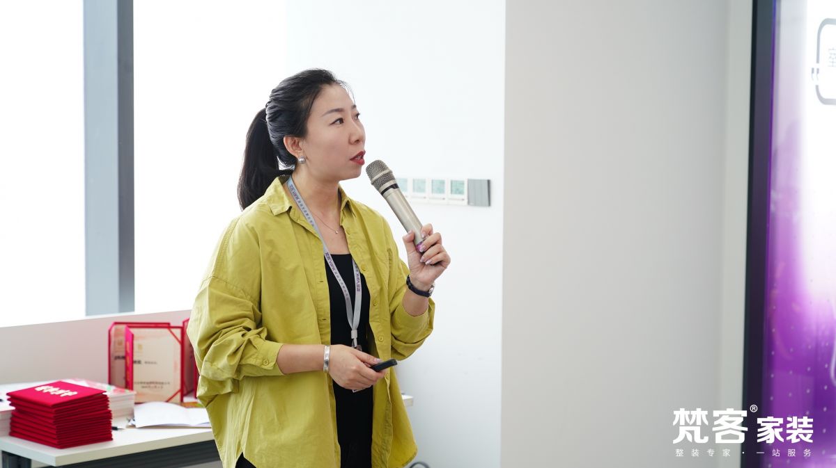 首先,梵客集團副總裁\梵客家裝總經理任琳女士帶領大家回顧了4月的工作。4月正是裝修旺季,梵客的小伙伴們不負使命,取得了令人矚目的成就。面對已經到來的5月依然要再接再厲,任總積極部署工作重點,要緊抓服務與效率、夯實專業與口碑、提升工程交付滿意度,力爭5月再創佳績。