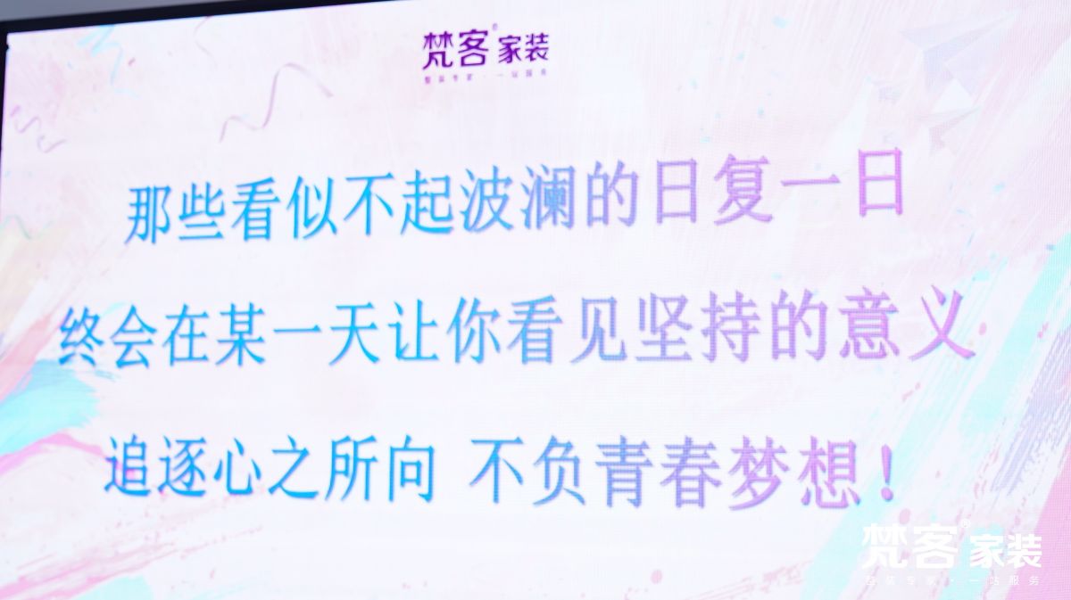 最后,各部門代表簽署軍令狀,放下昨日的輝煌,準備打響新一輪攻堅戰。梵客家裝成立18年,已為數萬名業主提供了滿意的裝修服務。未來,梵客家裝將繼續以更強大的品牌推廣,更完善的店面布局,服務京城百姓,讓大家享受到品質家裝,讓每位員工都能實現自我價值,成就輝煌!