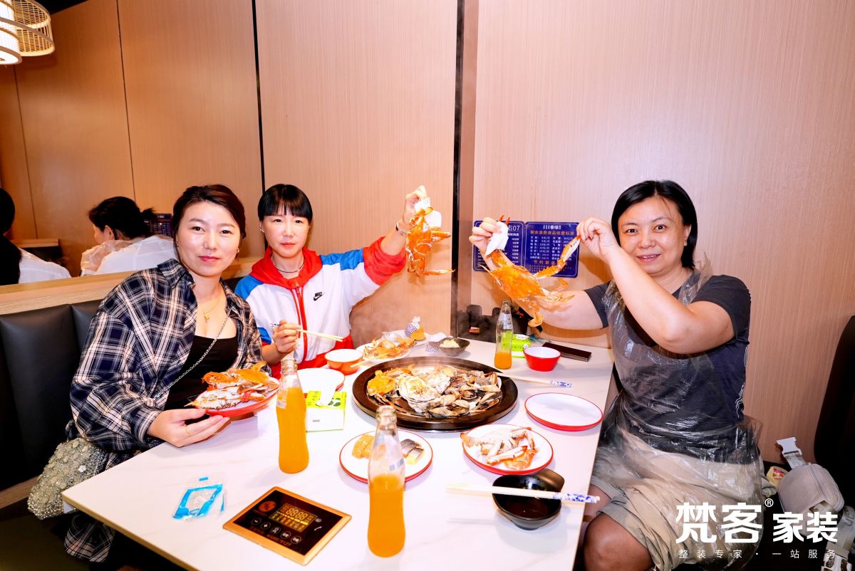晚宴是海鮮大餐,吃到盡興時大家舉杯歡呼,帶著微醺的醉意,彼此祝福,向青春致敬,為夢想干杯!突破自我不設限,巔峰之上創輝煌,工作中我們是攜手拼搏的好搭檔,旅途中更是共享歡樂的好伙伴。梵客家裝十里河店管理層精英戰隊,面對已經到來的金秋8月,依然信心十足。8月,我們一起加油,迎接新的凱旋!