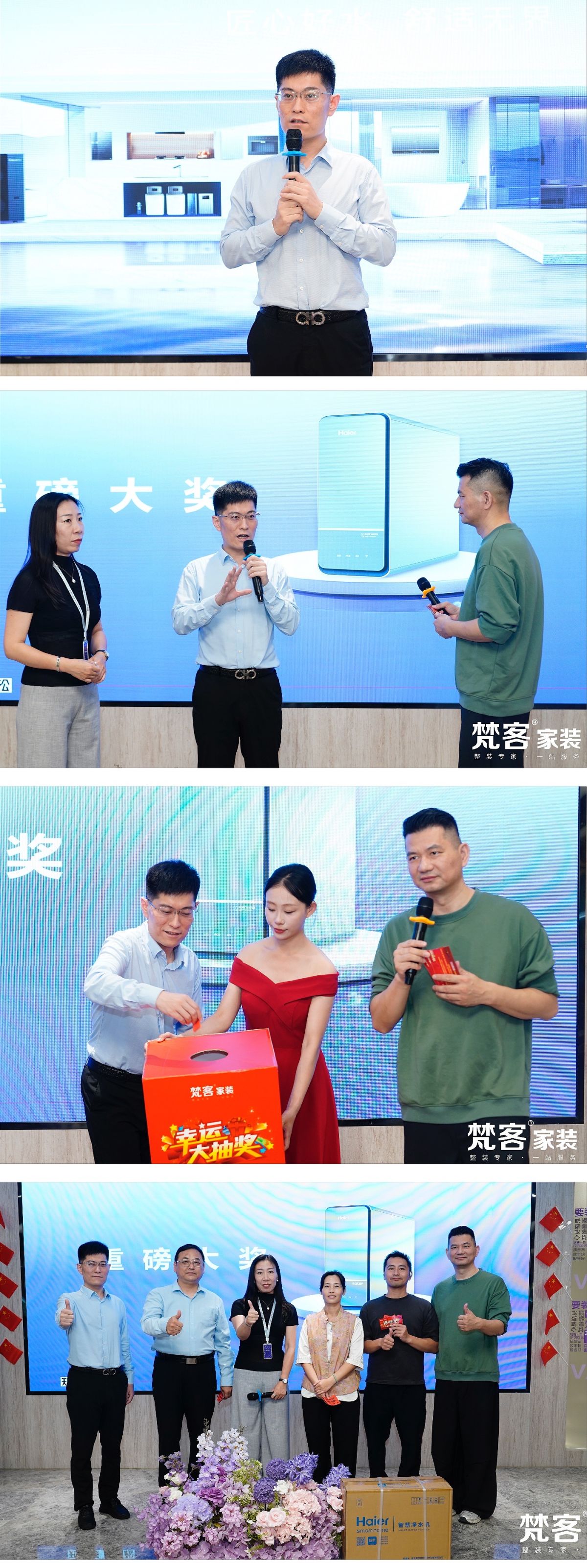 接下來上臺分享的分別是:來自海爾水聯網電燃總監呂光偉先生、海爾洗護前置總監于濱女士,以及北京國朗博實零售總監李文賀先生,他們從專業角度向大家講述了產品系列,讓大家對卡薩帝有了更全面深入的了解,同時主持了追加抽獎環節。此次,梵客家裝與卡薩帝的強強聯合,不僅是對品質生活的倡導,更體現了對品牌的誠信與責任的見證。