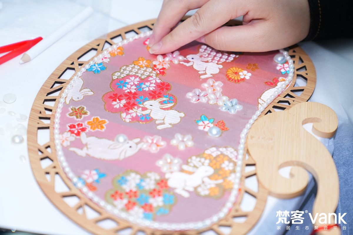 具有“錦繡之冠”美稱的宋錦可是非遺產物,它以精湛的織造技藝聞名于世;珍珠又是非常受歡迎的飾品,將二者巧妙融合制成扇子,便是傳統工藝與美學文化的完美呈現。選一款自己喜歡的扇骨與扇面,將精心挑選的珍珠粘貼,一款精致風雅、獨具韻味的古風禮物就誕生了。