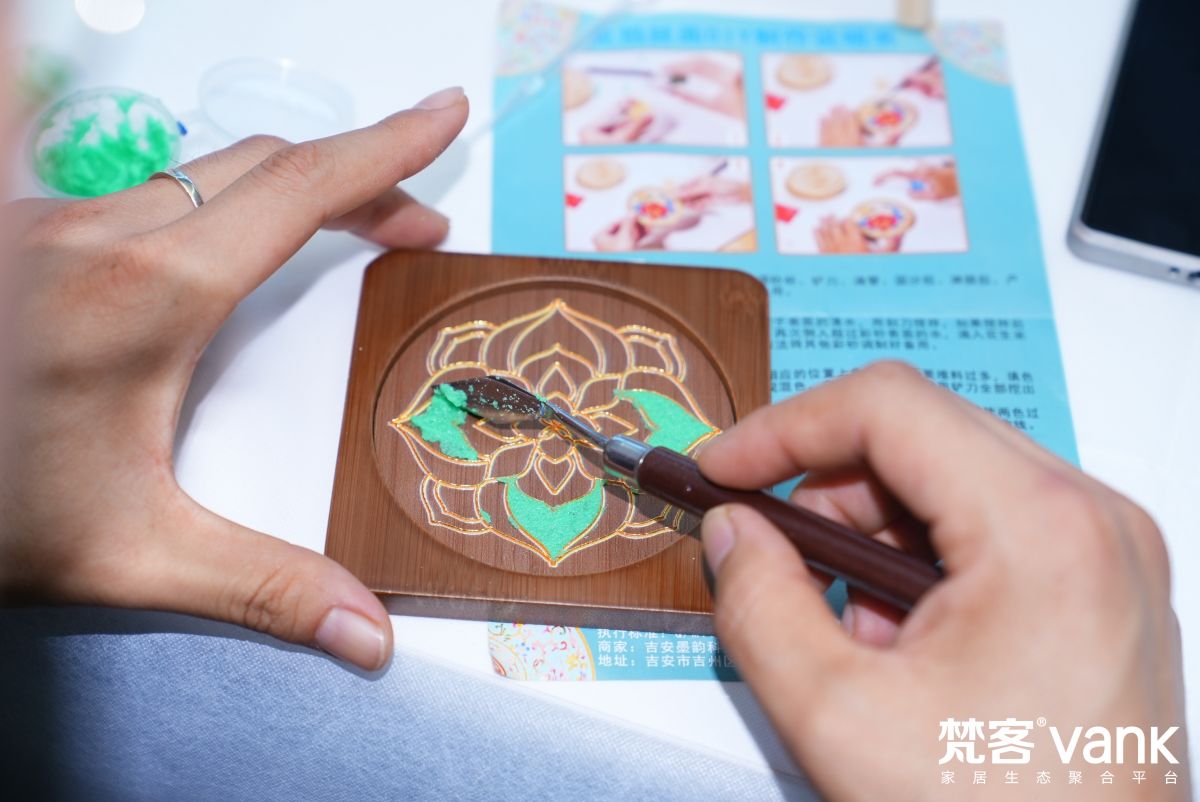 小伙伴很快投入到自己的藝術創作中,免掐絲琺瑯杯墊既保留了景泰藍的精髓,又省去掐絲的復雜步驟,新人也能輕松上手。打底、勾邊、調色、上色、均勻涂抹…超有成就感。這可不是一項簡單的手工活,更是對傳統文化的致敬與傳承。