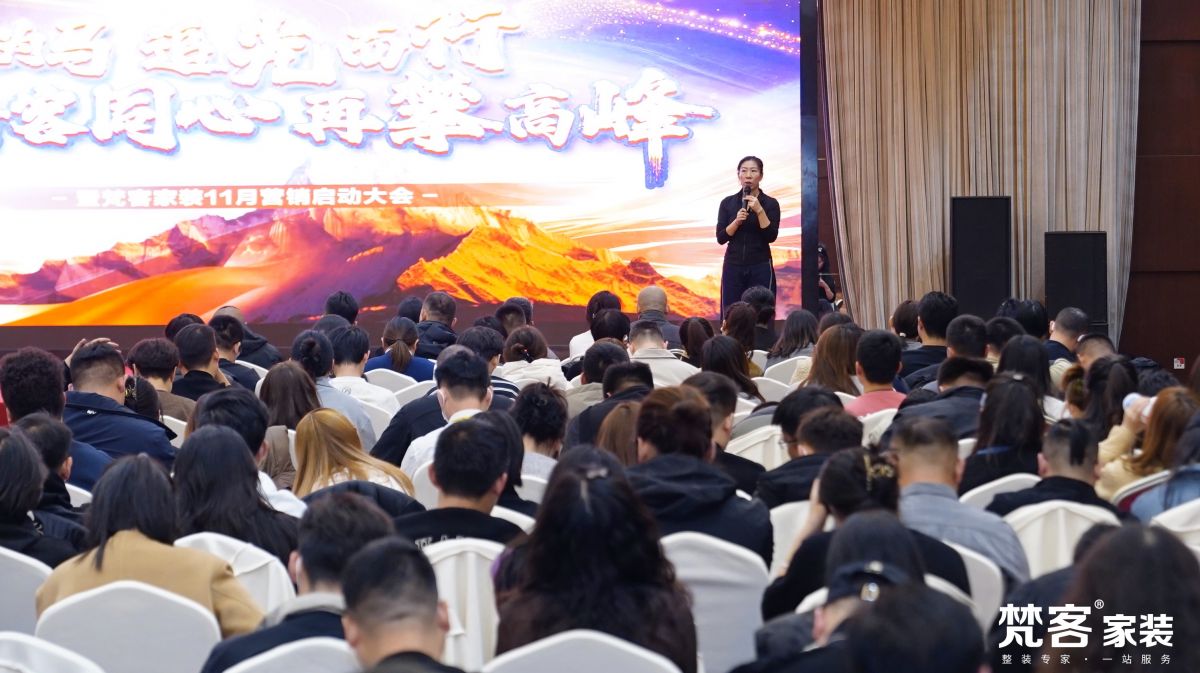 近日,梵客家裝11月營銷啟動大會在京召開,與會人員有梵客家裝十里河店、奧體中心店、城外誠店中高層領導及營銷端員工。會議在以夢為馬,追光而行,梵客同心,再攀高峰的口號中嘹亮唱響,大家齊聚一堂,在梵客集團副總裁/梵客家裝總經理任琳的帶領下,總結了10月的工作經驗,并為11月發力鼓足士氣。