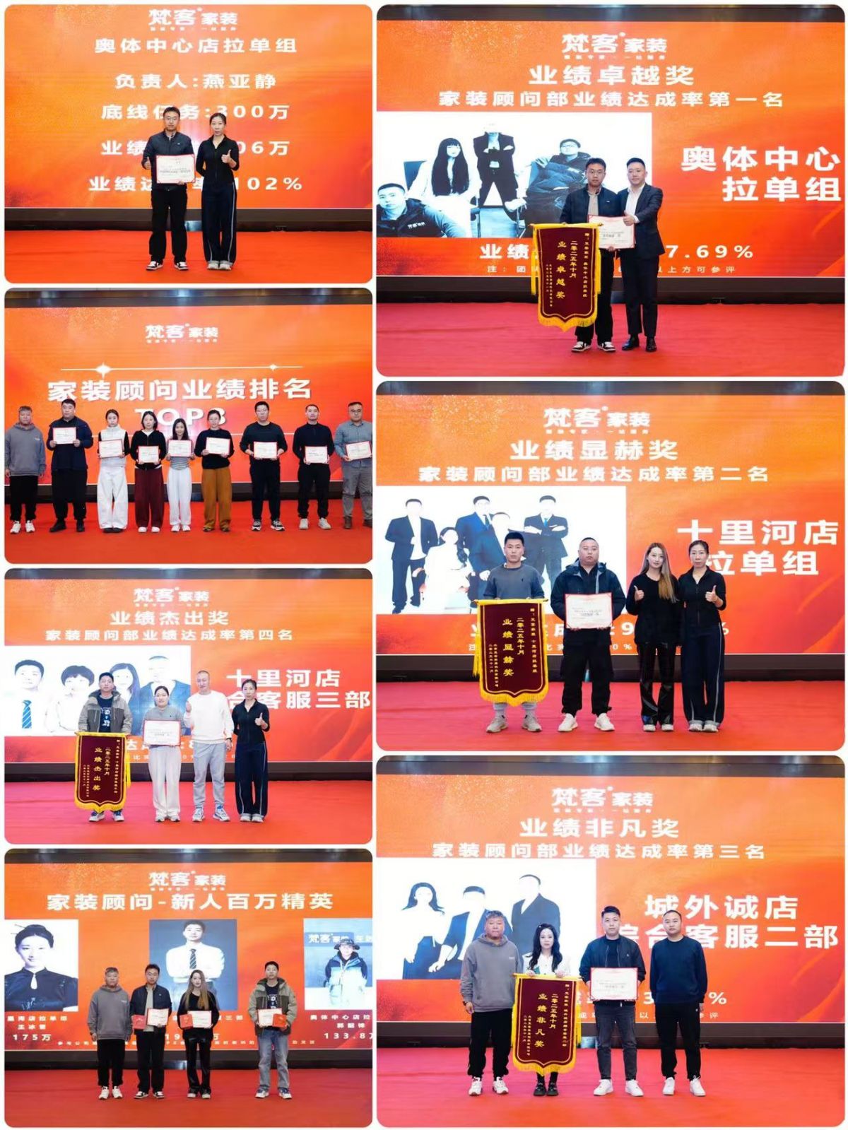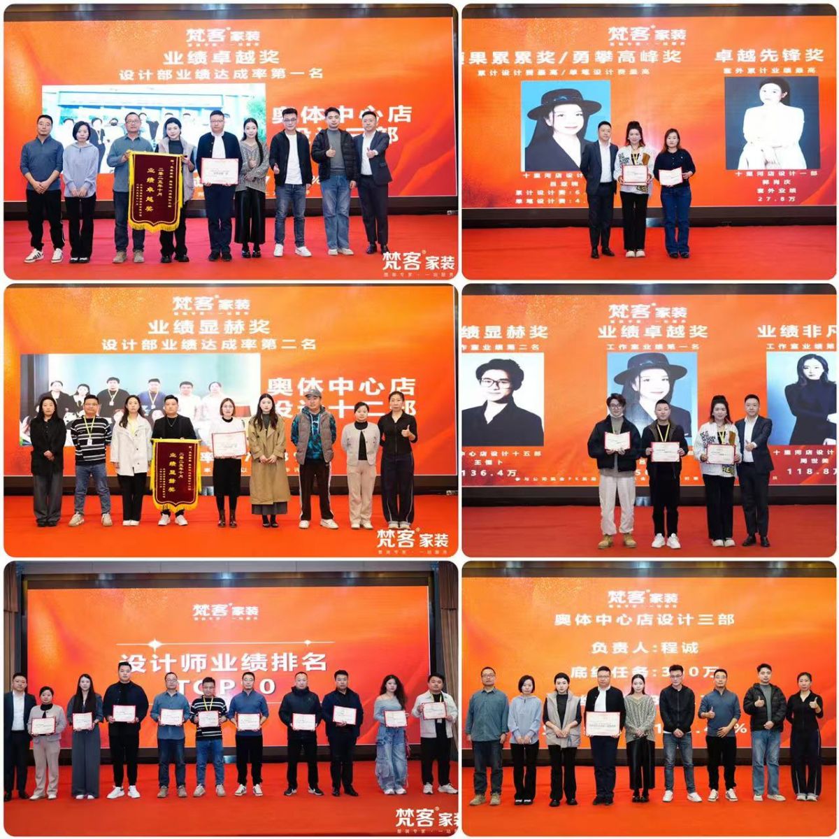 公司的發展壯大離不開員工的努力,此次大會對10月取得優異成績的梵客精英進行了表彰,并頒發獎狀與錦旗,其中包括設計部、家裝顧問部、設計師、家裝顧問等團隊獎、個人獎等。