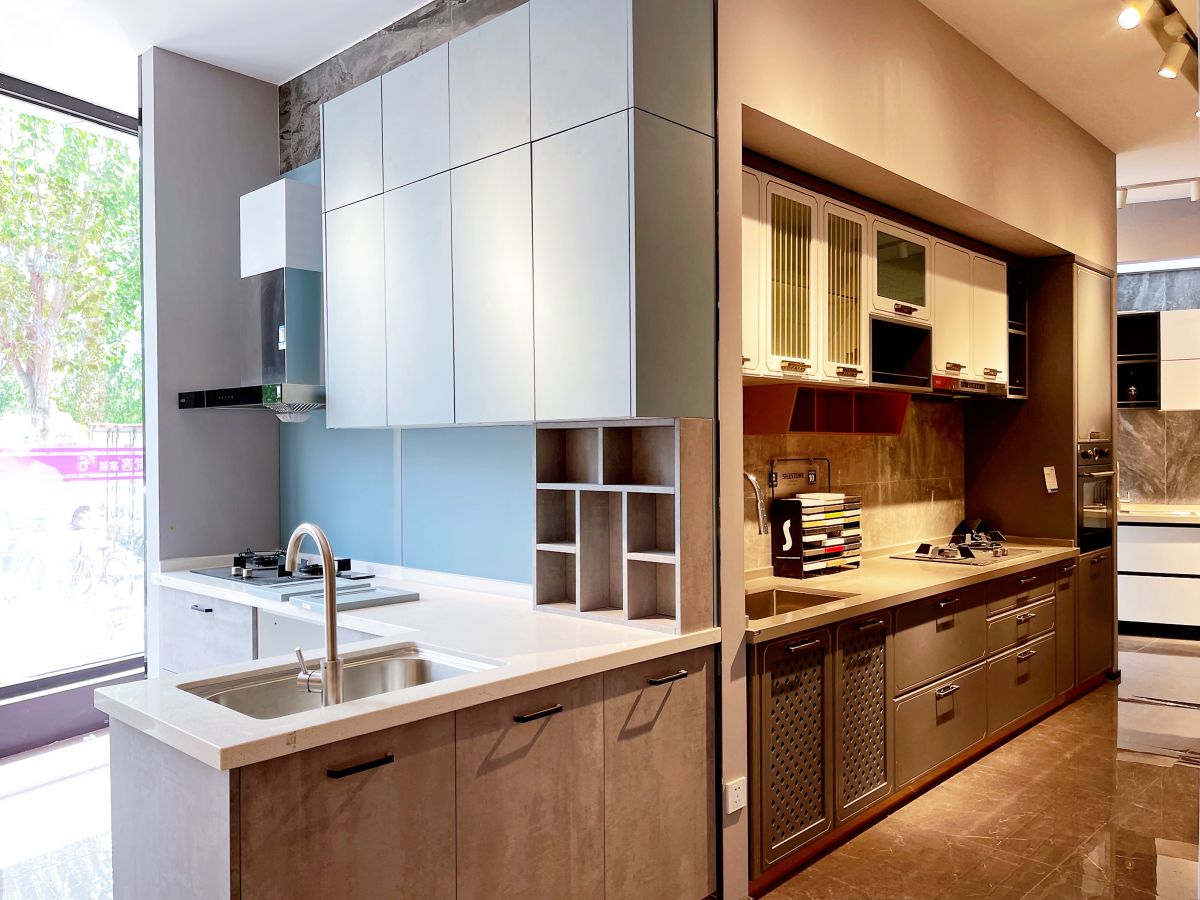 櫥柜區,有適合多種戶型的整體櫥柜,現代時尚、簡約工業、清新原木等多種風格。L型、I型、U型,多款造型,業主可根據自家戶型參考選擇。特別升級的抗菌板,可以全面呵護家人健康。