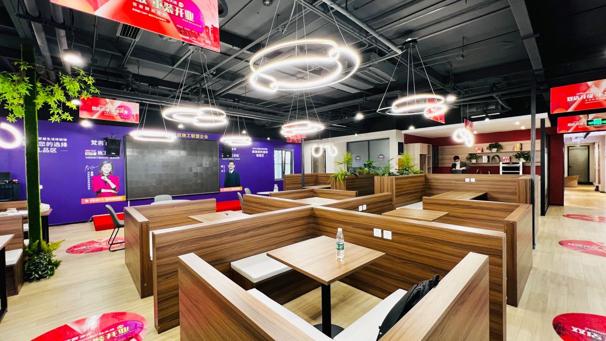 北大店的大廳在3F,這里也是最熱鬧活躍的區域,公司活動、客戶談單都在這里。空間寬敞明亮,為業主朋友營造了良好的溝通氛圍。被隔成半開放式小間,又具有一定私密性,方便每家獨立溝通。