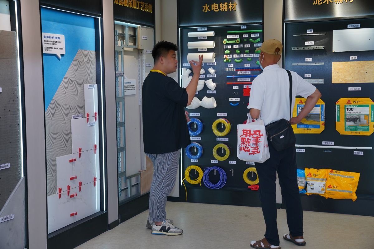 業(yè)主朋友可以在這里一站式選購主材、輔材,了解梵客的工藝展區(qū),看德標整裝3.0工藝,以及薄貼工藝、雙層板吊頂工藝、墻面涂飾工藝、新砌隔墻工藝、強弱電工藝、廚衛(wèi)水電工藝等,還有設(shè)計師專業(yè)講解,幫助業(yè)主更好理解,裝修更放心。
