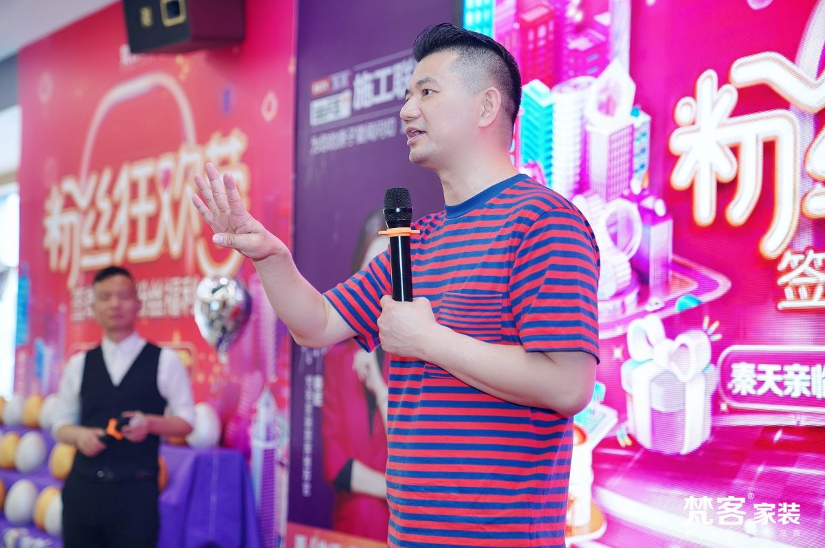 “…希望所有到場的業主朋友在今天能有好的收獲,也希望梵客家裝的小伙伴為大家帶來專業、權威、周到的服務,讓業主安心、放心、省心,最后把完美的新家交到業主手中…正逢粉絲節,我們也會拿出最優惠的福利給業主朋友,祝大家裝修愉快!”