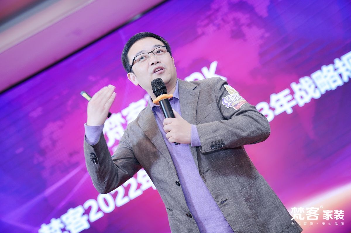 在大家熱情的掌聲中,梵客集團董事長李靜先生登臺致辭。作為行業領軍人,李總憑借卓越的實力,創造了家裝行業的奇跡。他總結了2022年的輝煌業績,又為2023年制定了新的戰略目標,提出“齊心、恒心、決心,共贏2023”的宏偉計劃,致力于完成新一年的宏圖愿景!
