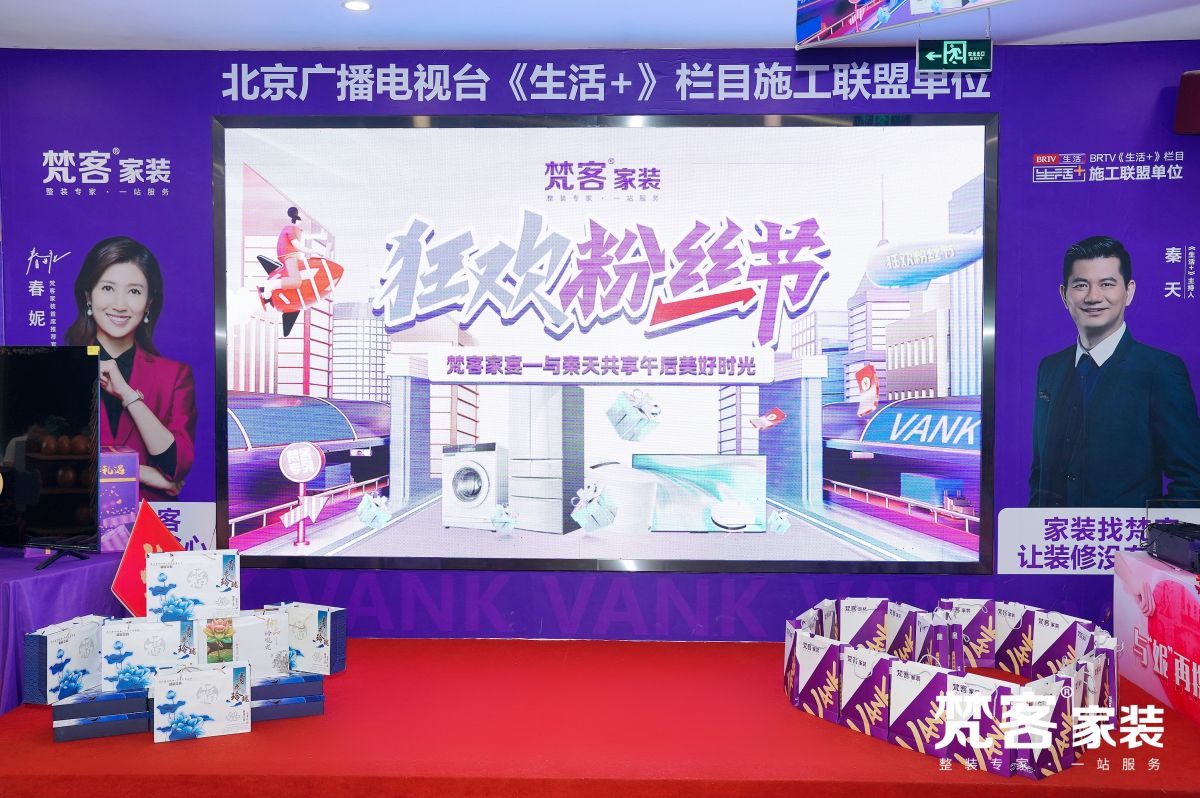 伴隨著秦天老師的到場,活動正式開始。秦天老師是北京廣播電視臺生活+欄目的主持人,也是梵客家裝的老朋友。在此次狂歡粉絲節(jié),秦天老師專程來送福利—《生活+》施工聯(lián)盟協(xié)議。