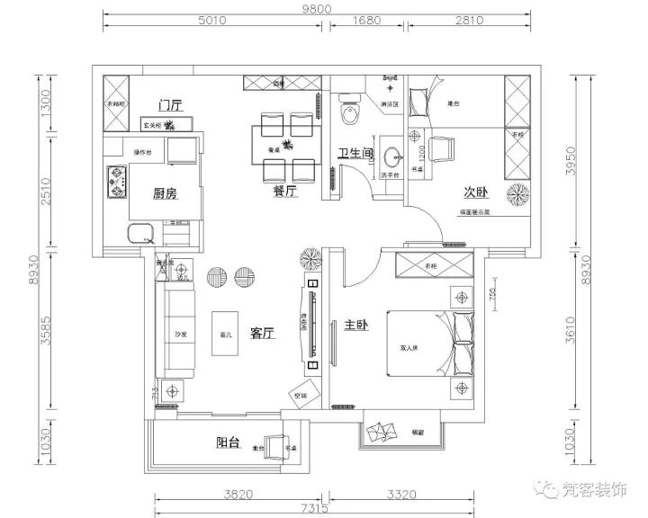 從原始平面圖和平面布置圖的對比來看,原房型結構比較合理,所以并沒有任何房型改動。這套房子建筑面積為92平米,平日只有康先生和太太,外加一直喵星人居住,2室2廳剛剛好。