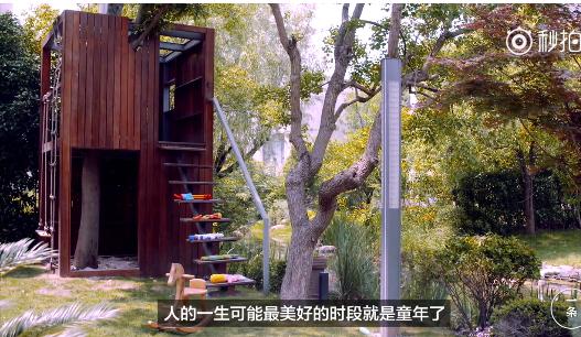 兒童樂園,花園里有一個非常漂亮的大樹,搭建了后院樹屋,小朋友社交的重要場合,