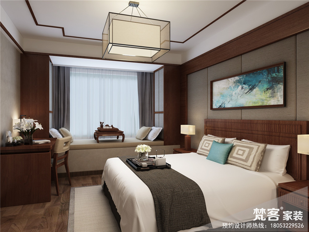 中國文化博大精深源遠流長,在中國文化風靡全球的現今時代,中式元素與現代材質的巧妙兼柔,唐宋家具、明清窗欞、布藝床品相互輝映,再現了移步變景的精妙小品。