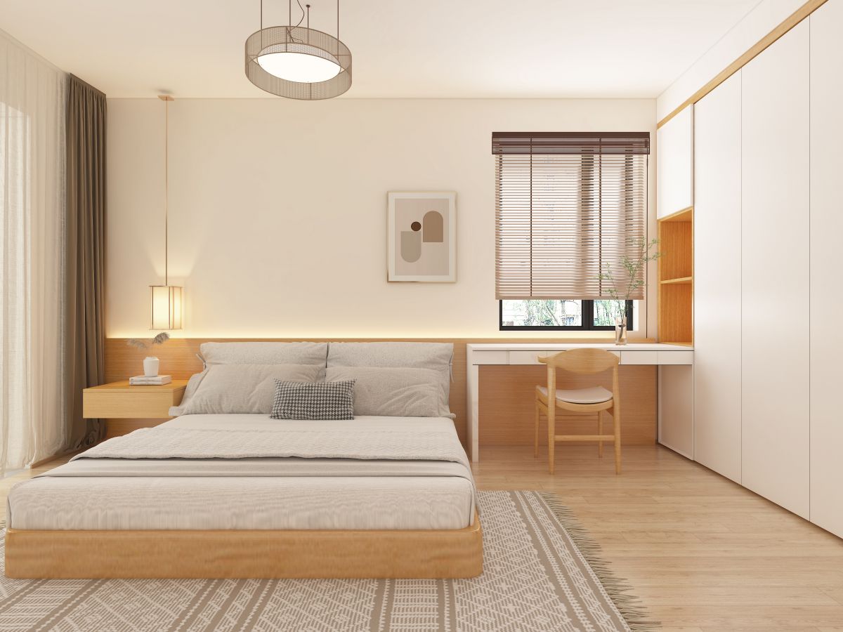 主臥,采用衣柜梳妝臺一體定制,節省空間