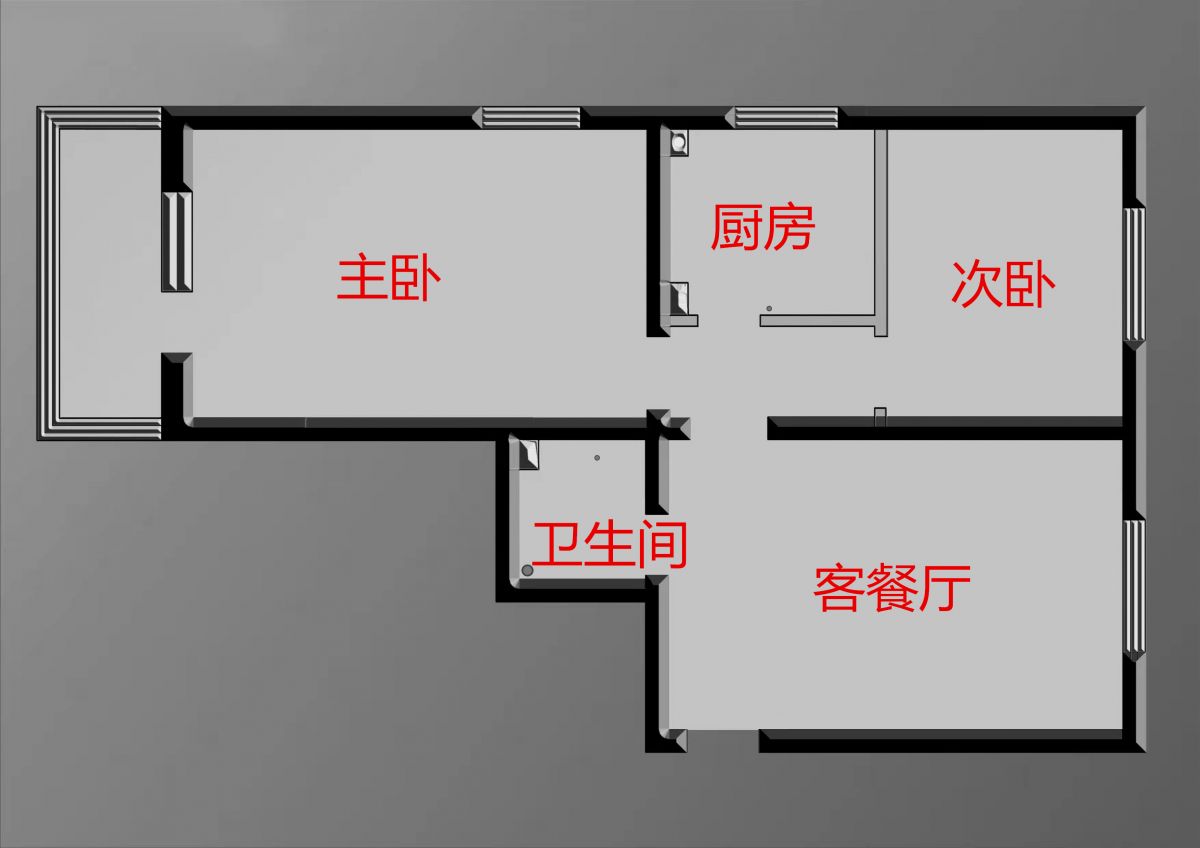 將次臥和客餐廳互換。客餐廳和廚房形成一個整體,次臥面積增大