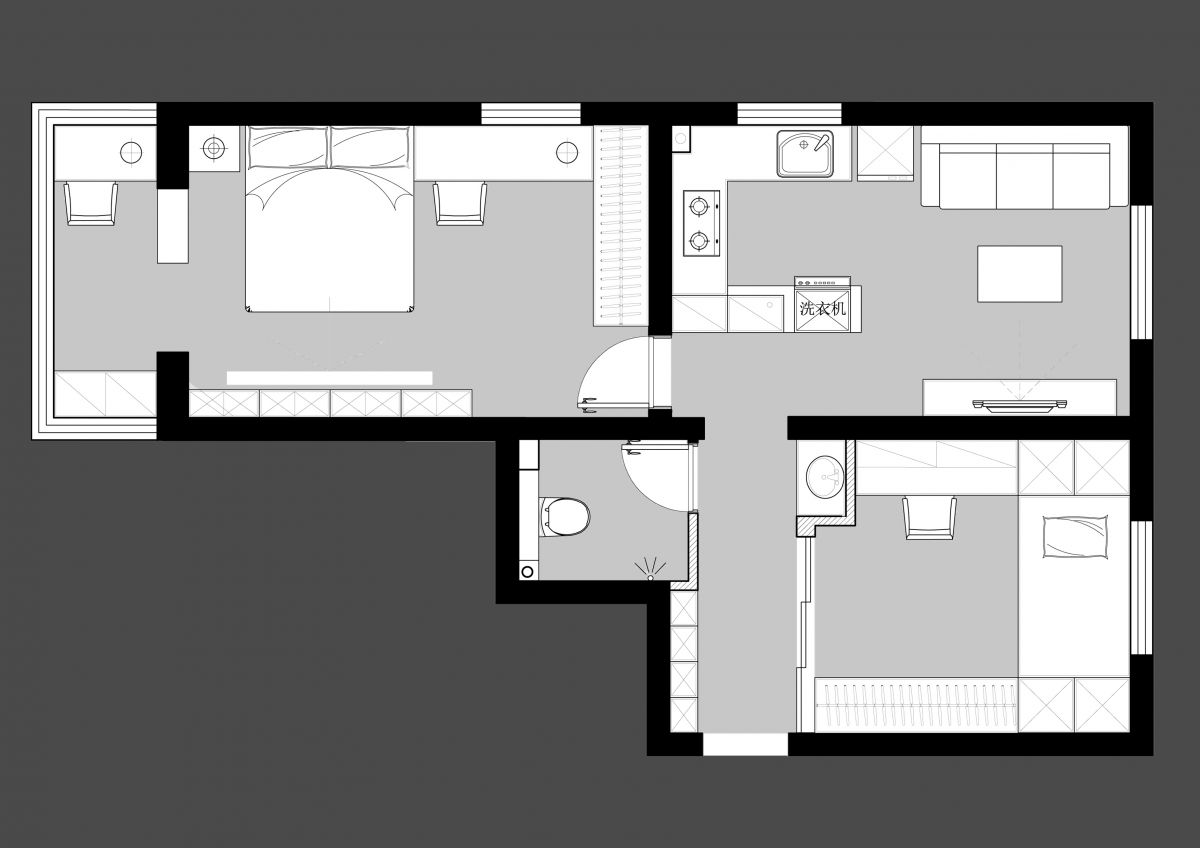 這是一套2室1廳1廚1衛的老房,年輕小兩口準備裝修做婚房,男主是IT精英,女主是教師。他們希望自己的新家能繼續保持兩居室,有客餐廳,洗手間干濕分離,此外還要有充足的收納空間。