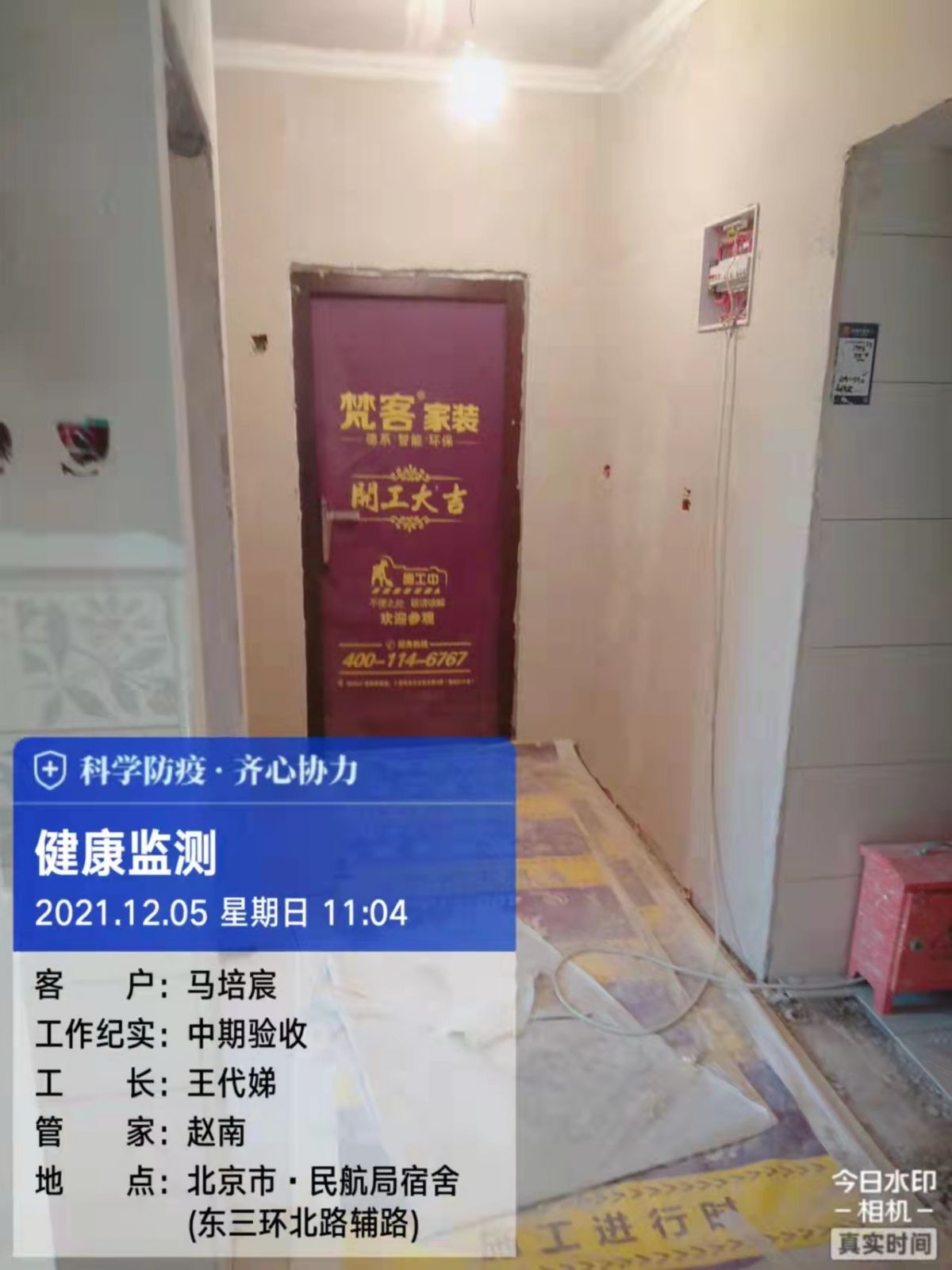 從進場開始,首先要用梵客家裝專用保護套,將業主新換防盜門保護起來,防止搬瓷磚等硬物時,磕碰到門導致掉漆。裝修竣工后,保護才會撤場。