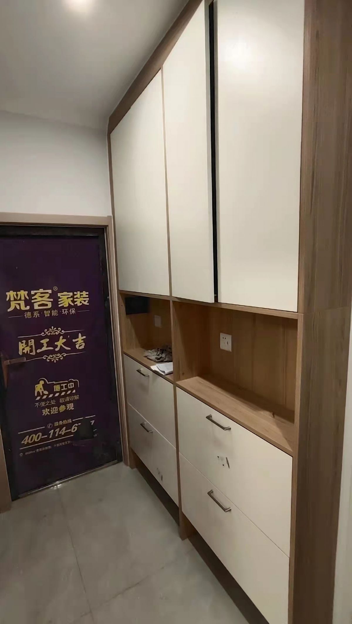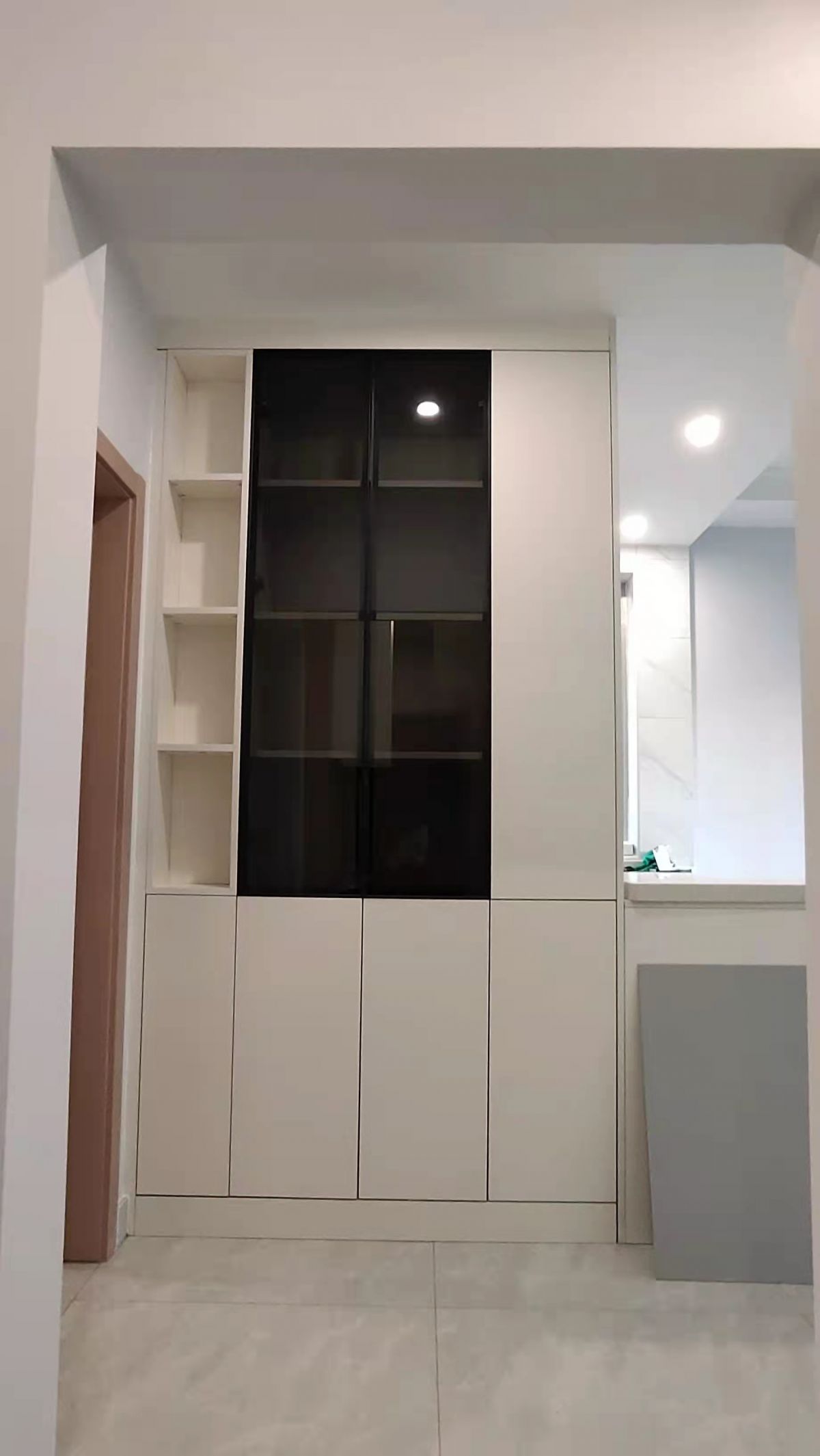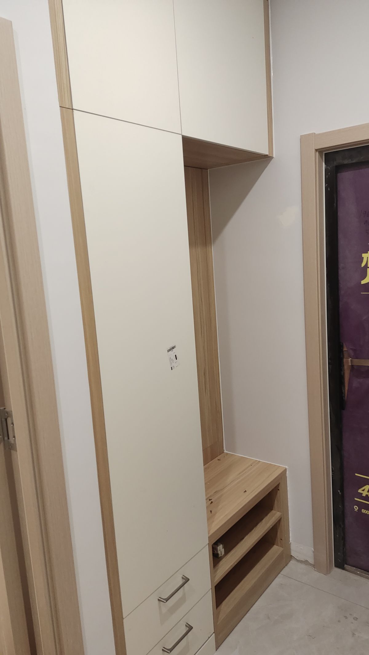 ↓ 這個收納柜是將衛生間原有墻體外移后,與門廳玄關位齊平,增加的內嵌式鞋柜。