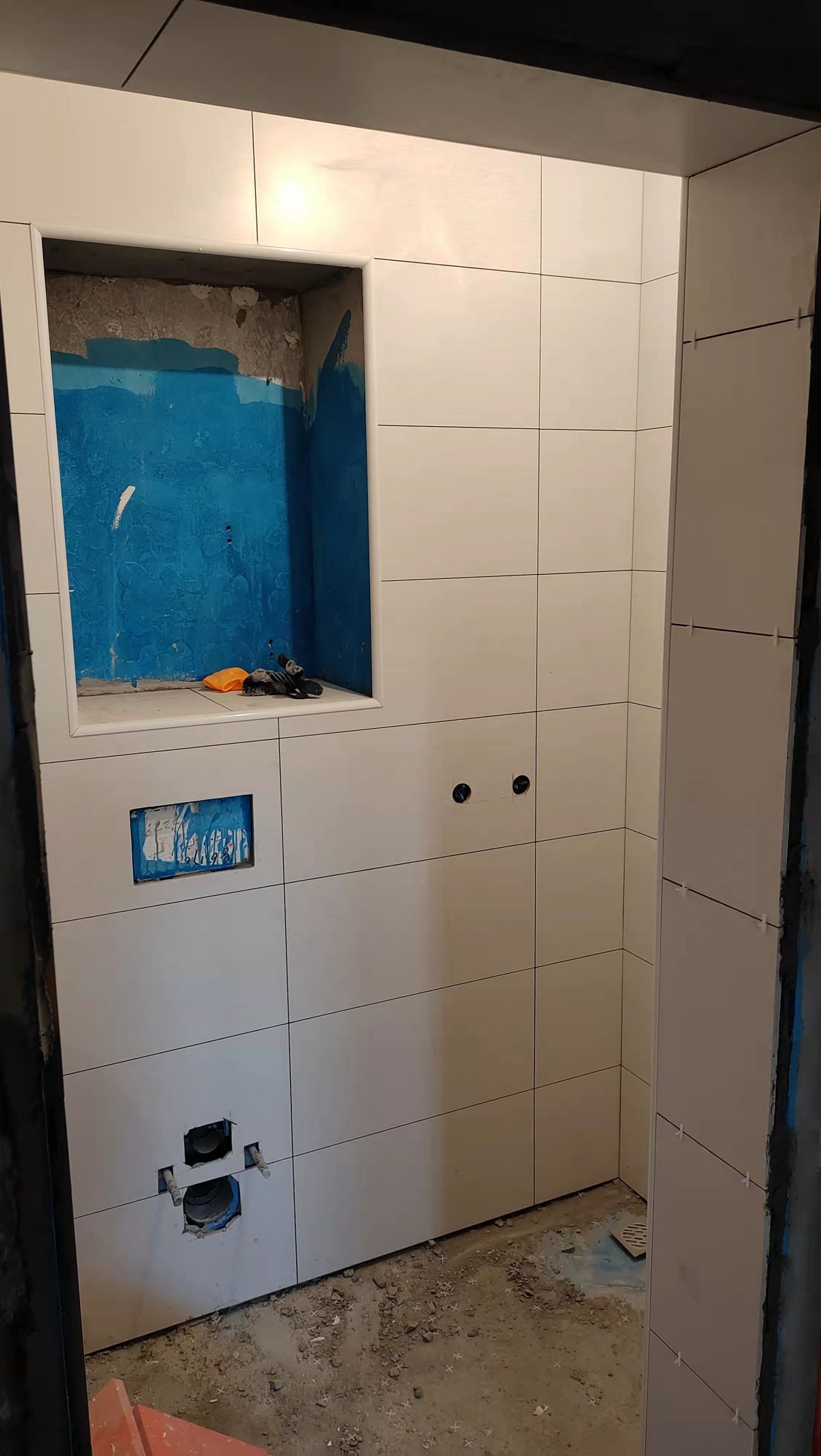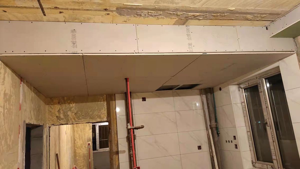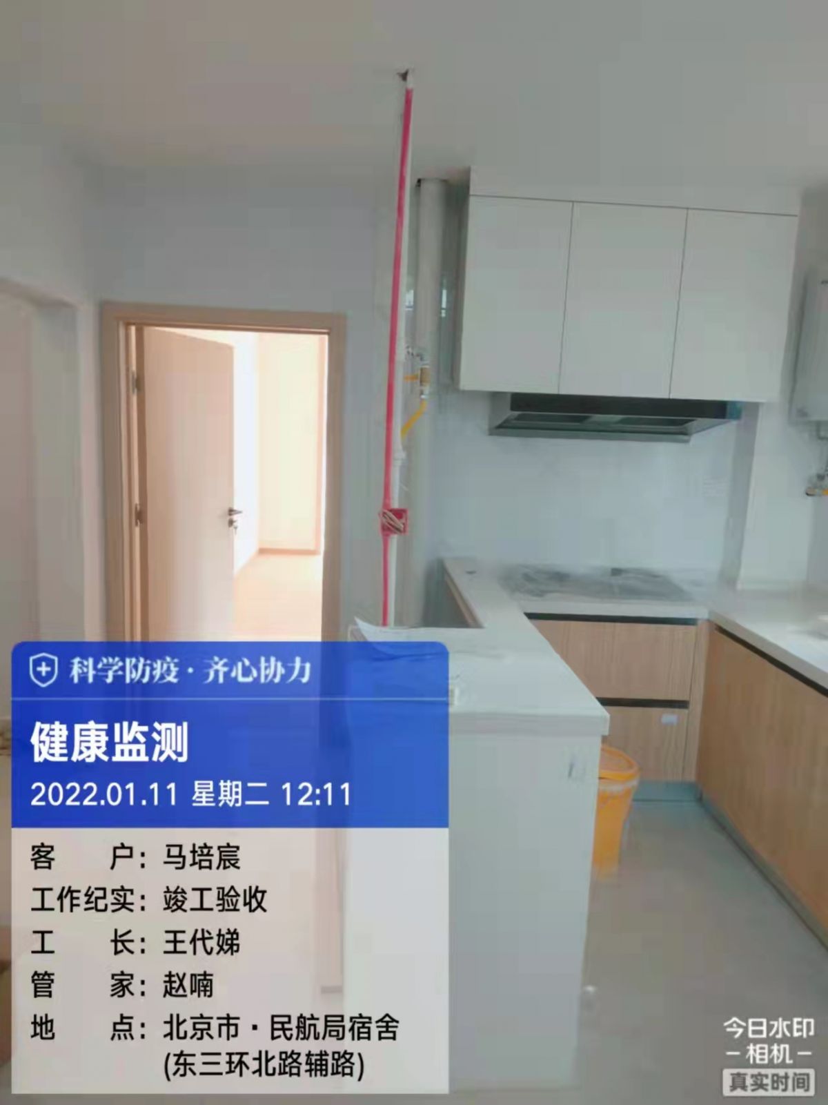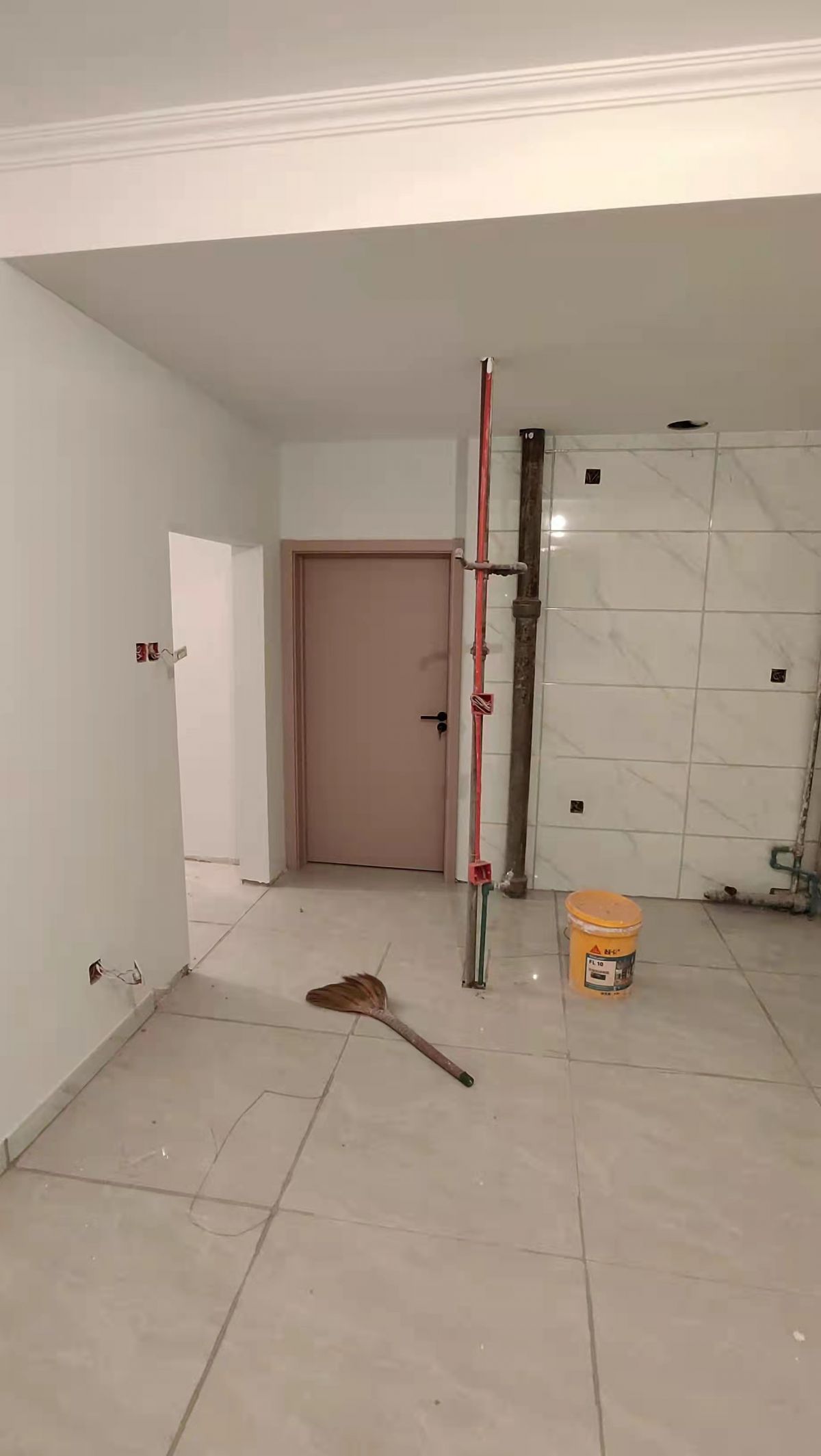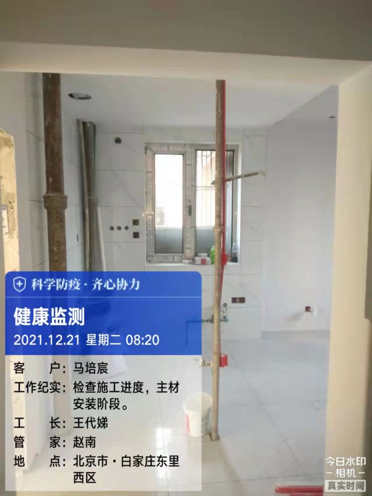 檢查施工進度階段可以看出:廚房的墻面瓷磚鋪貼平整,幾乎“無縫銜接”,輕敲瓷磚表面,聲音沉悶,無空鼓磚。