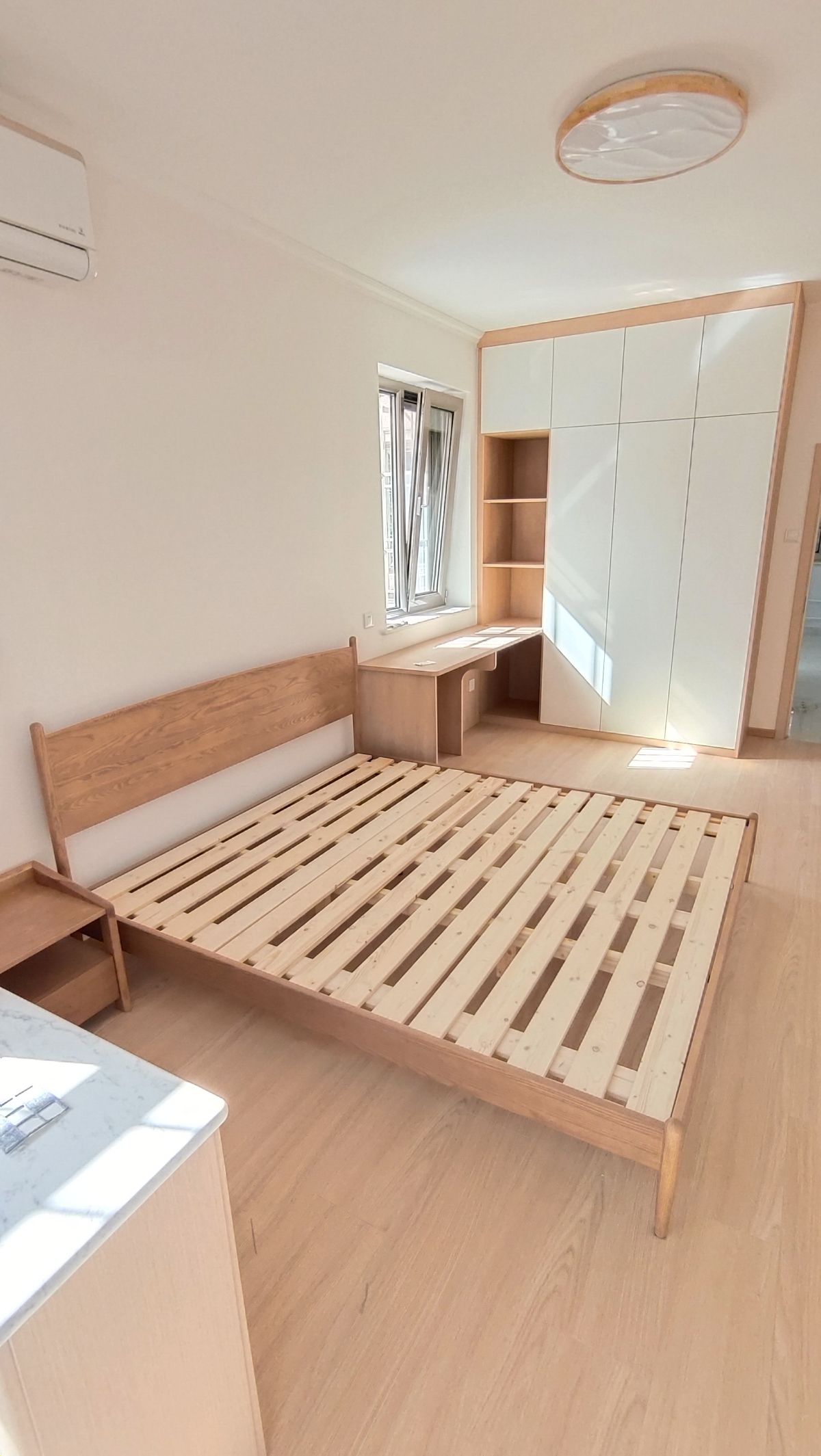 小空間,非常適合定制家具,衣柜、梳妝臺一體定制,邊邊角角都利用起來了,每寸空間都不浪費。