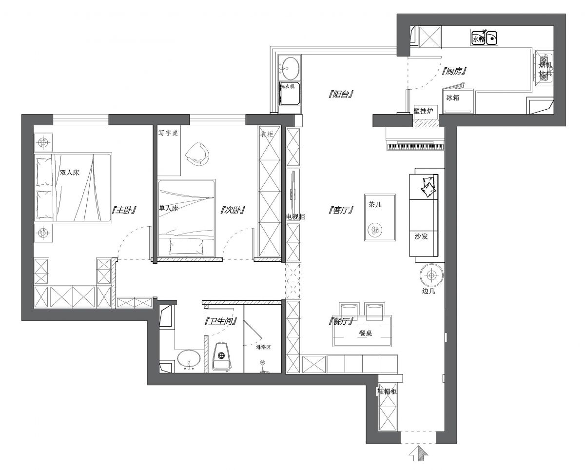 為了空間更合理地利用,規避戶型缺陷,提升使用舒適度,白老師做了如下調整,通過原始平面圖和平面布置圖,即可看出不同: