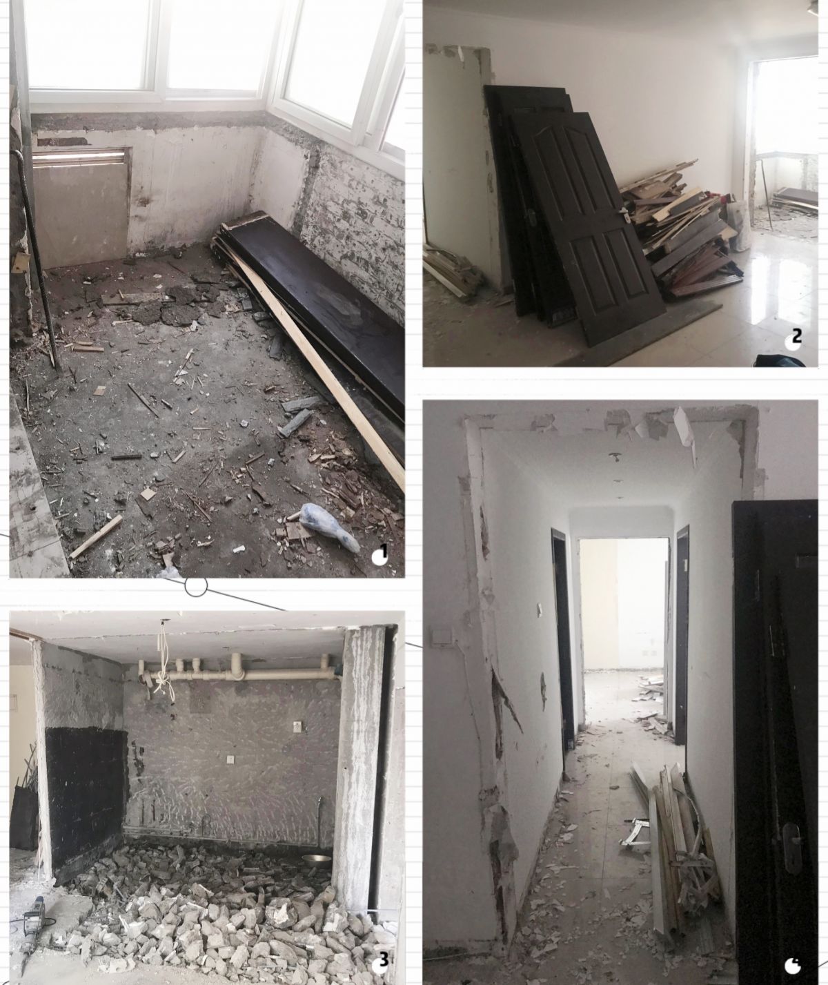 拆除時,要先斷開電路,用臨時施工電箱。保護好燃氣表,關閉用氣總閥門,檢查是否有漏氣現象。注意用水,防止水滲到樓下。嚴禁拆除涉及安全的結構墻體。拆除的垃圾要堆放整齊,時刻保證工地整潔。